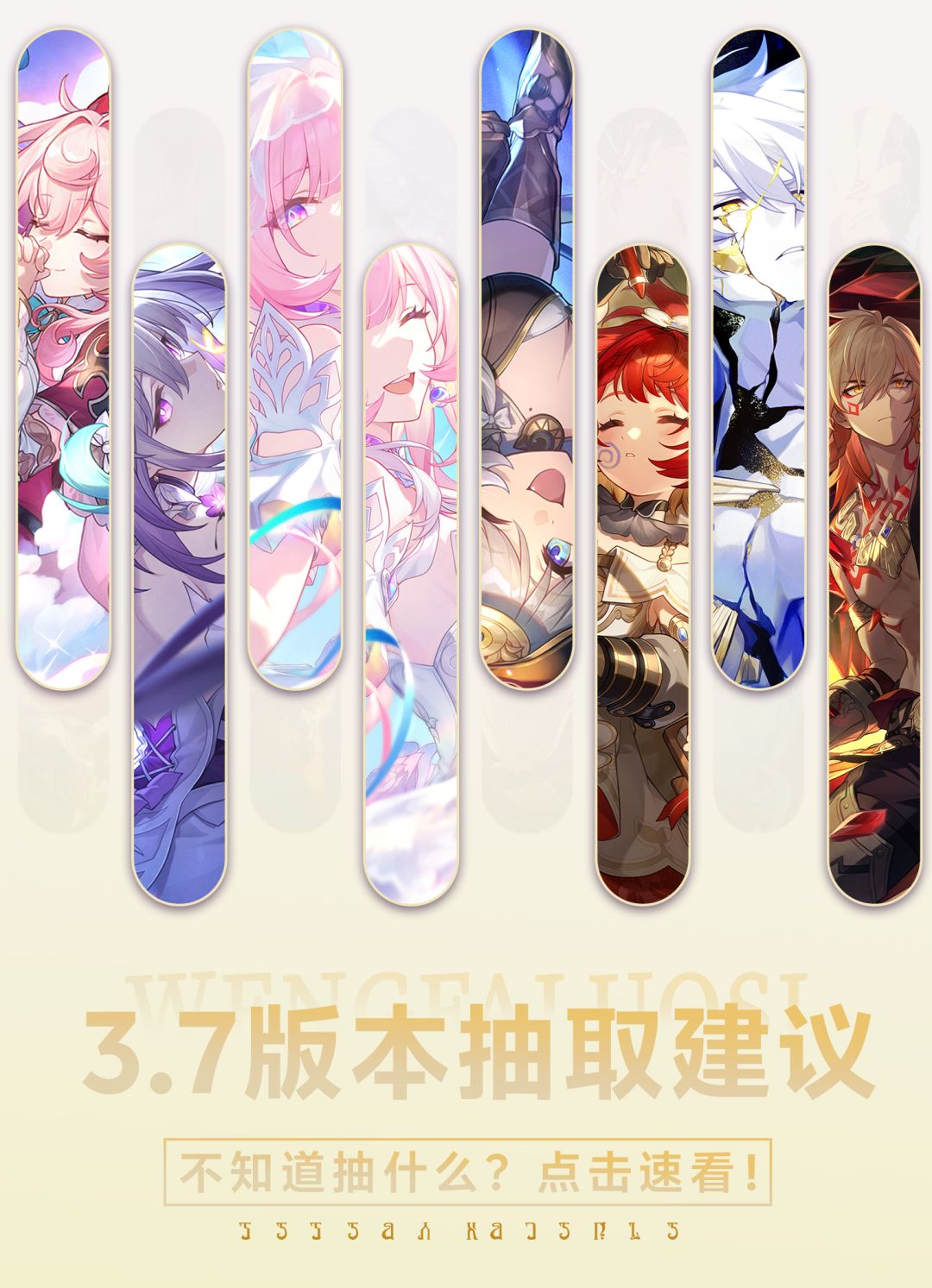 3.4 上半白厄 复刻缇宝,星期日,花火 下半流萤,镜流,刃 白厄 在3.4能配合目前最好单拐周日,还被传有刻律德菈,丹恒(荒笛)两个售后,不过白厄最大的问题是乘区过于单一的纯攻击力导致无法变现倍率潜力,同时机制还是怕伤害太高而搞出来的限制型机制 抽白厄的玩家要多考虑售后 星期日 仍是目前最好的单拐,但抽取上要目的性足够强,抽周日仅从白厄的角度考虑,周日每一次行动都能提供白厄火种,拉条让白厄行动也