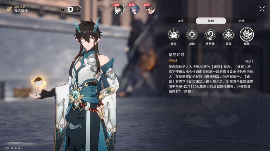 【崩坏:星穹铁道】 UID:102444222 这里是毛豆,本期为大家带来的是5星虚数毁灭角色——丹恒·饮月的培养攻略。 本篇包含光锥、遗器推荐,技能的使用技巧、配队思路等,这些问题毛豆都会一一分析。 本篇内容的推荐方面仅基于毛豆个人观点,尽量客观地用“白话文”去阐述! 01.照惯例先看技能。 饮月为单回合多次战技点消耗的输出角色,所以想要打出高额的伤害,战技点的使用至关重要,逆鳞可以代替战技点进