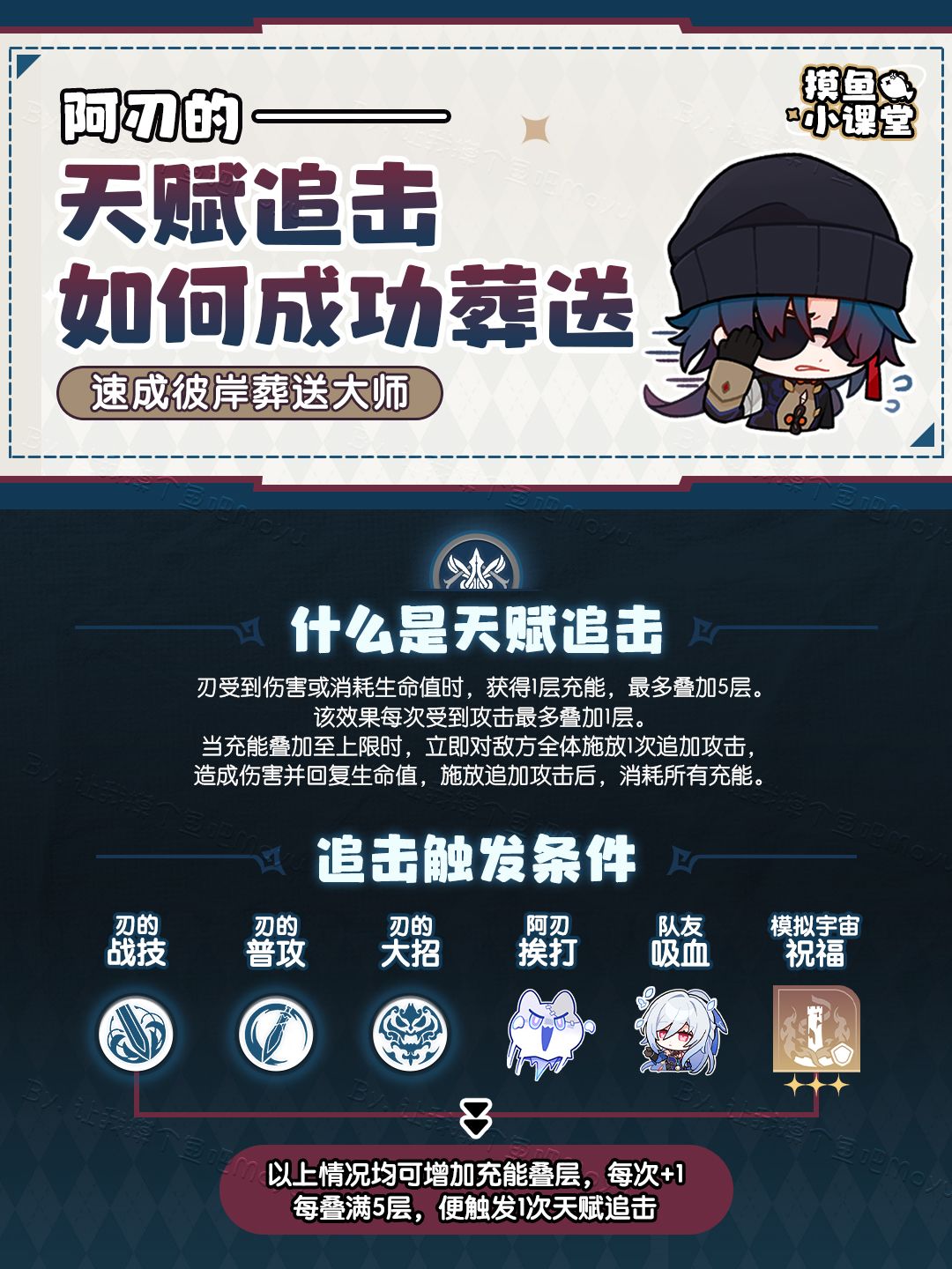UID:104347362 将将!这里是摸鱼酱,大家新年快乐呀! 复刻卡池的阿刃篇《摸鱼笔记》已经出了,再为大家附上《摸鱼小课堂》时间!一!定!要!看!懂哦~ 《阿刃的天赋追击如何成功葬送?》带你速成彼岸葬送大师! —————— ฅ՞• •՞ฅ ——————— 觉得有用的话一定要关注摸鱼酱哦!好了,以上就是本期的全部内容。 走了走了,打牌去了~ 🔘制作不易,严禁任何商业性转载及搬运,转载需标注出