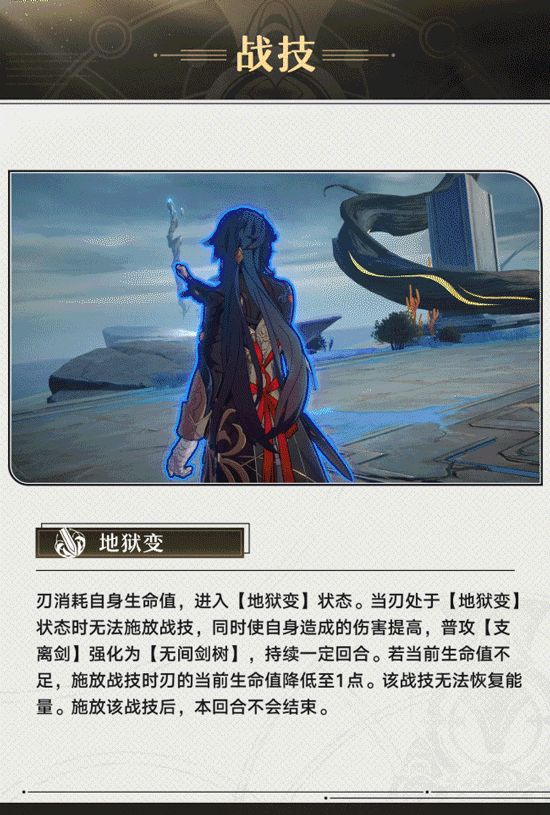 【崩坏:星穹铁道】 UID:102444222 这里是毛豆,本期为大家带来的是5星风属性毁灭角色——刃的培养攻略。 本篇包含光锥、遗弃推荐,技能的使用技巧,以及配队思路,刃的优势以及弊端在哪里?哪些玩家适合抽取?这些问题毛豆都会一一分析。 本篇内容的推荐方面仅基于毛豆个人观点,尽量客观地用“白话文”去阐述! 01.照惯例先看技能。 普攻方面不再赘述。 战技可以理解为损失血量强化普攻,但损失的血量是