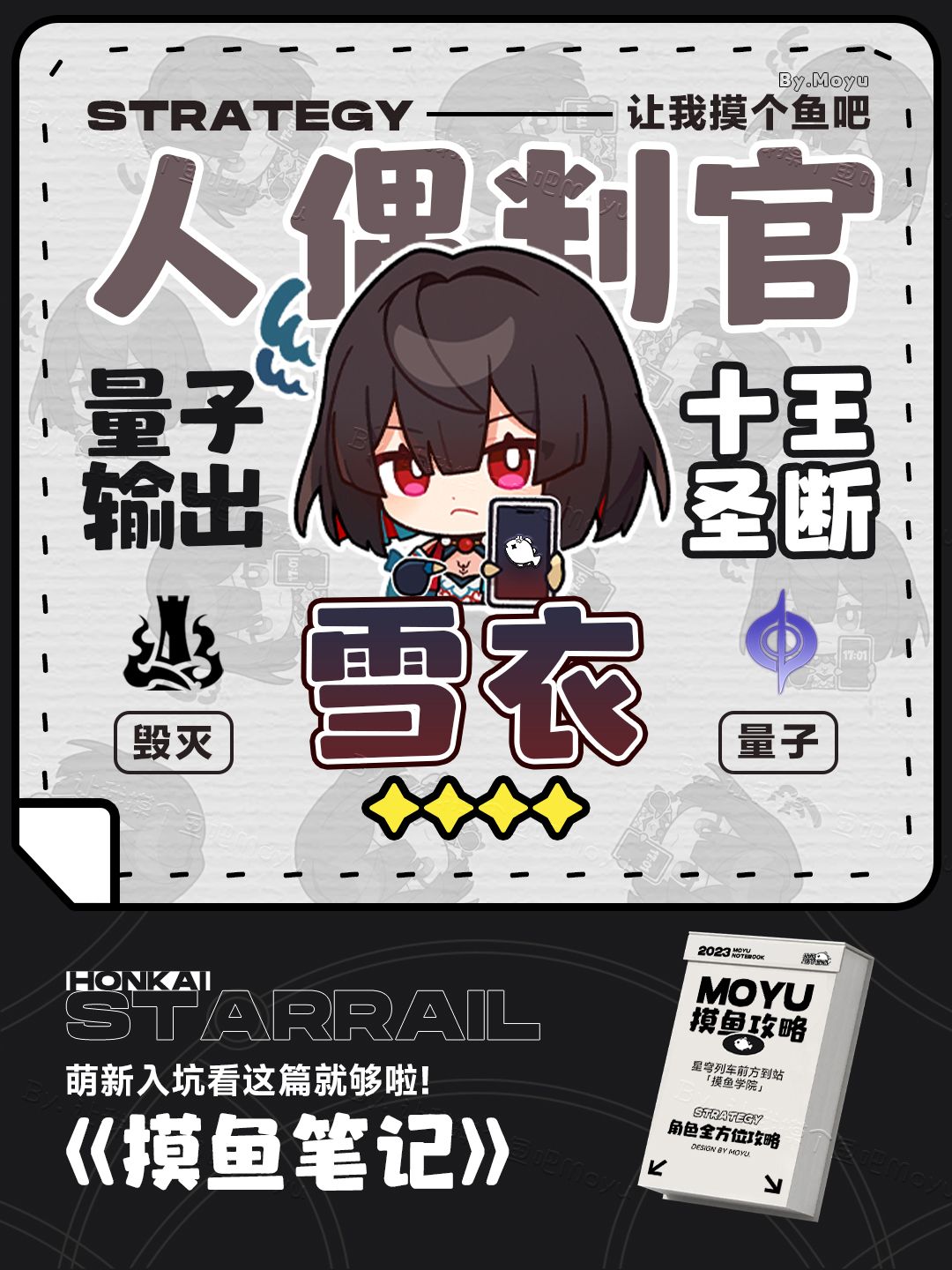 UID:104347362 将将!这里是摸鱼酱,摸鱼一直爽,一直摸鱼魔芋爽! 本期的主角是「十王司」的判官,寒鸦的姐姐,偃偶少女——『雪衣』!!! 主页附上超详细小课堂《雪衣的天赋[恶报]如何叠层》 「与你交谈的,是十王赐下的偃偶之身。」 —————— ฅ՞• •՞ฅ ——————— 【关于攻略内一些未呈现内容】: 1.光锥部分: 【此身为剑】: 镜流的专属光锥,暴伤为固有词条,特效部分不能稳定触