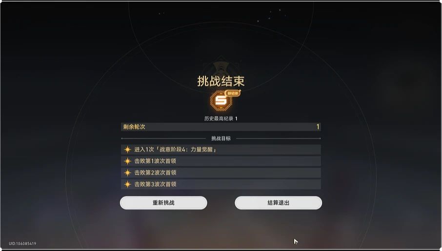 UID:100489912 开拓者们,大家好啊 这里是天龙筮,本期带来的是2.1版本限时活动「战意狂潮」 第一天扑满效应的挂机攻略 活动时间: 2024/04/13 12:00 - 2024/05/06 03:59 开启条件: 完成开拓任务「雅利洛-Ⅵ」-「静静的星河」 第一天【扑满效应】 辅助功能选择: 战意阶段2——恐惧易伤 战意阶段3——终极一击 配队选择: 黄泉、卡芙卡、黑天鹅、加