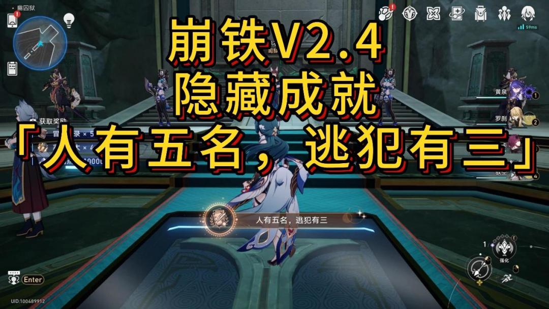 UID:100489912 开拓者们,大家好啊 这里是天龙筮,本期带来的是2.4版本中的隐藏成就「人有五名,逃犯有三」获取攻略 获取地区:仙舟「罗浮」—幽囚狱 前置任务:完成开拓续闻「仙舟『罗浮』」-「明霄竞武试锋芒•上」 开放时间:2.4版本 成就获取难度:⭐⭐⭐⭐ 成就耗时:10~15分钟左右 成就分类:与你同行的回忆 先传送到仙舟「罗浮」—幽囚狱—一层上方「勘录舍·栈道前」的锚点#崩坏星穹铁道