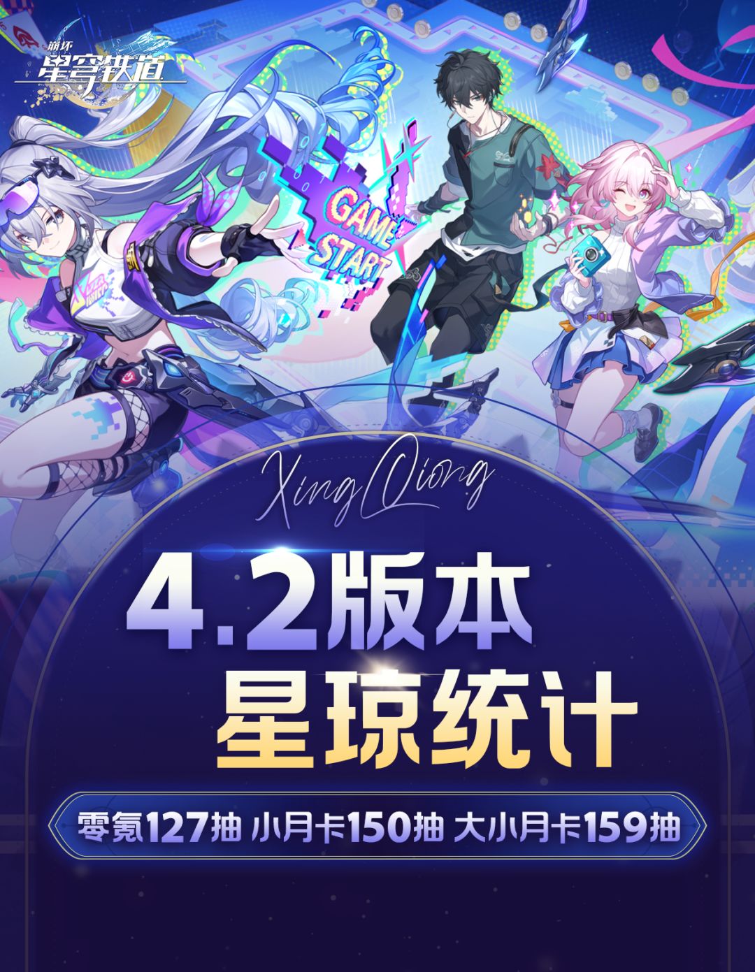 UID:104802274 大家好!这里是小橙子阿! 这一篇是星铁v4.2新版本抽数统计,整体分为总体统计与各内容版块统计,总体统计分为了:零氪、小月卡与大小月卡,方便大家根据自身需求选择查阅。 本攻略适用版本:v4.2丨如是,众生欢笑不已 查阅须知: ① 版本持续时间【2026.04.22~2026.06.02】共计:42天; ② 整体产量为预估产量,准确数量请按v4.2实装为准。 #崩坏星穹铁