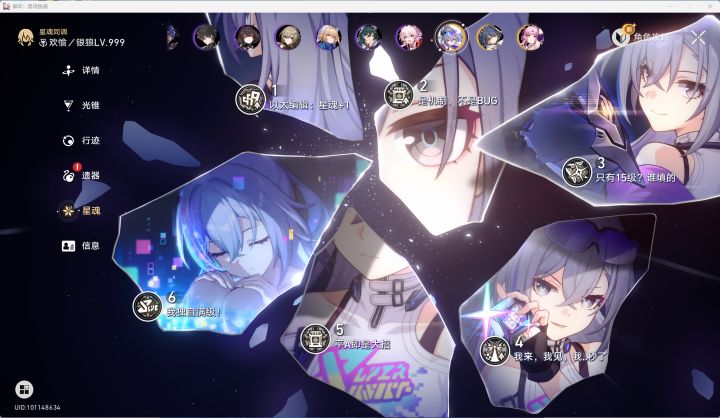 交作业了:角色池:6抽出银枝,41抽出0命狼尊,39抽1命狼尊,78抽瓦尔特第3命,53抽出2命狼尊角色小保底2歪,6+41+39+78+53=217抽,出了2命银狼加银枝瓦尔特,共5金。光锥池:68抽歪如泥酣眠,15抽出狼尊光锥,小保底1歪,68+15=83抽总结:运气还行,平均40抽1个金,但是歪的有点离谱了,2+1狼尊歪了3次。我有0+1火花,0+0瑶光,先凑活玩吧。。。榨干