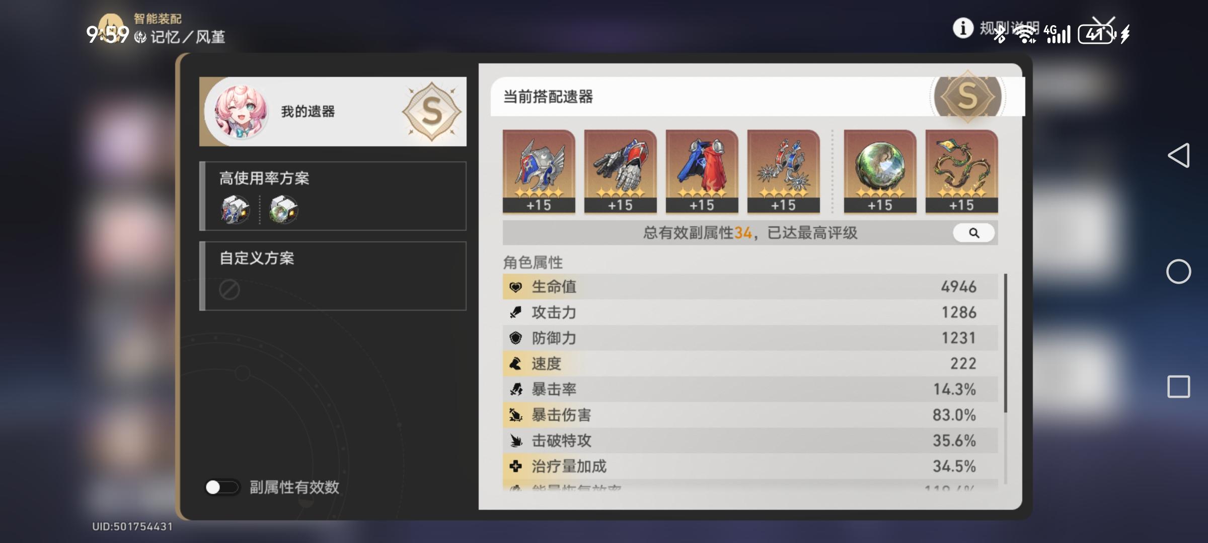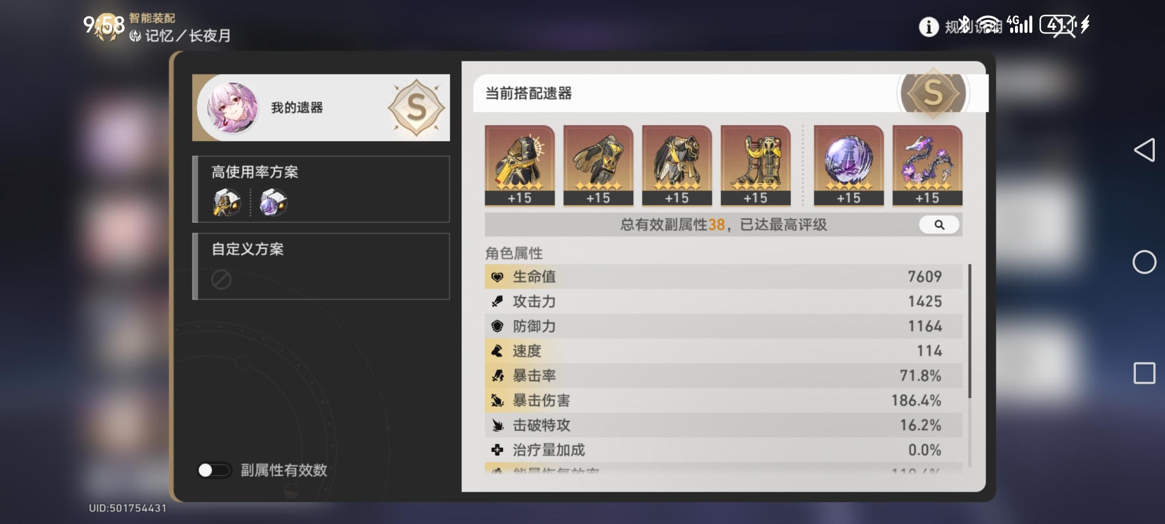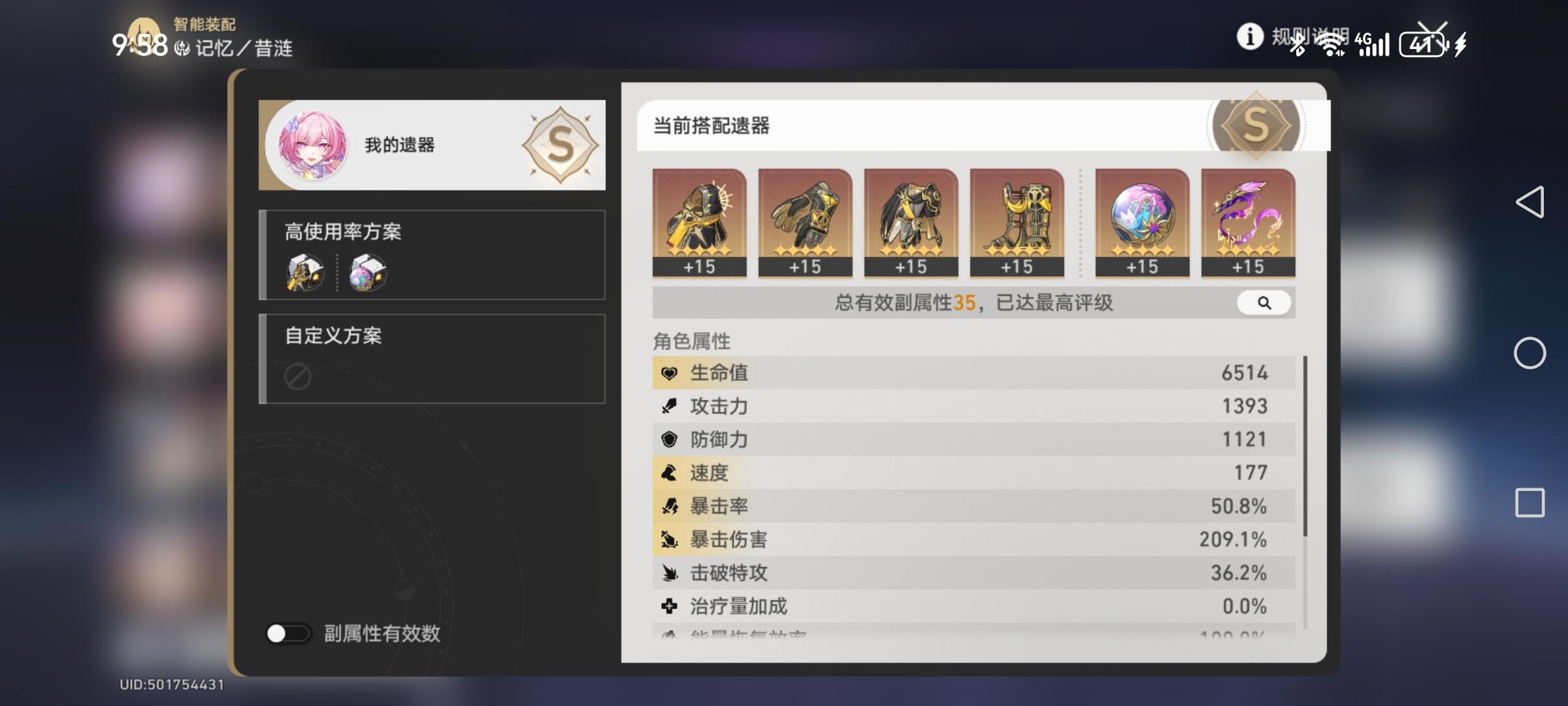 21蝶风昔,11月。遗器词条蝶32,风34,昔35,月38。异相仲裁这个模式2风和2月重要性越来越明显,三月没有二命太容易断大招了。凹了好多遍才2t。换成21月11昔甚至01昔都应该容易过一些。等三月七复刻了,看看膨胀程度,看看是不是补个2命吧。
