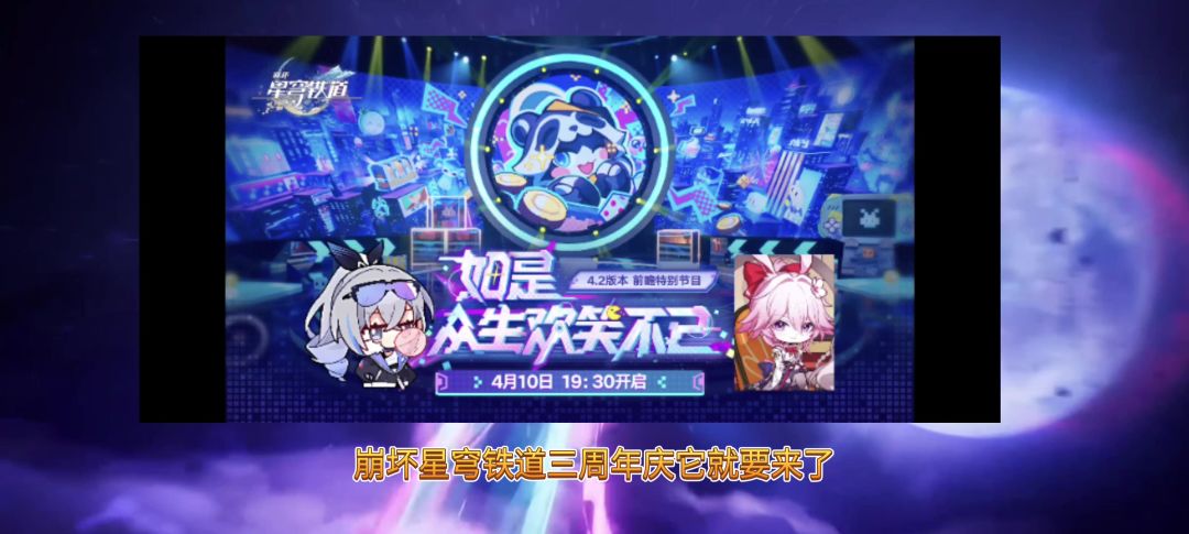 三周年庆他就要来了,星期五晚上7.30崩坏星穹铁道4.2直播前瞻狠狠期待一波,去年的纪念册和演唱会很不错![赞][比心][爱心]期待一下这次三周年庆!_(月亮 欢迎)