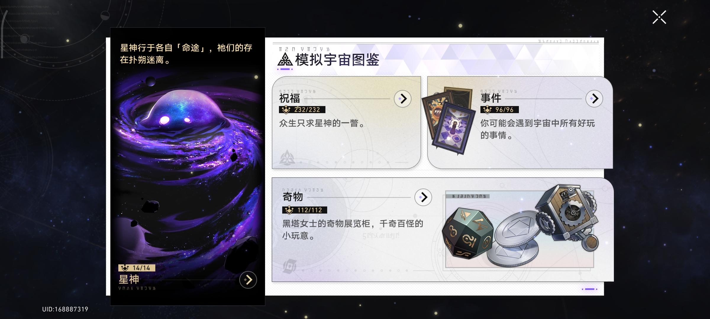 开新号第66天,12万星穹,模拟宇宙就差阮梅图鉴全收集,刷了一个小时就出了,还是双阮梅,可惜只能选一个。现在游戏内可获得奖励的只剩差分宇宙和成就了
