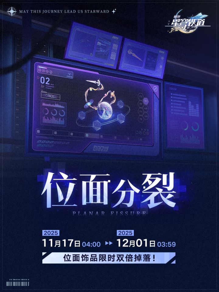 亲爱的开拓者:本期「位面分裂」活动时间为 2025/11/17 04:00 - 2025/12/01 03:59。活动期间将获得一定的双倍奖励次数,挑战「模拟宇宙」或「差分宇宙」时,可获得双倍奖励。※详情可前往游戏内公告查看。