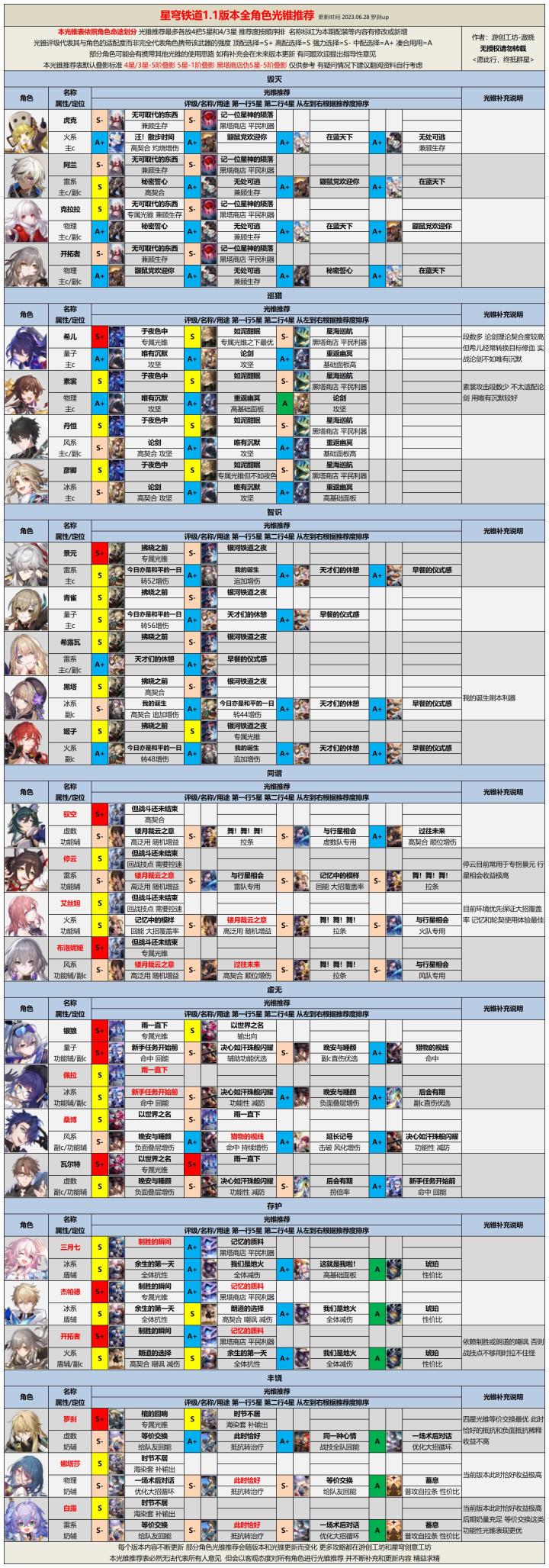 UID 100760002各位开拓者好,我是澈晓。经过1.5个版本的洗礼,星铁第一位限定5星丰饶终于来了。相信各位开拓者已经领略过混沌回忆中各种怪物的实力,也都明白生存位在星铁探索过程中的重要性。1.1下半版本实装5星虚数丰饶罗刹和4星虚数同谐驭空,瞬间让虚数大家庭热闹了起来。新角色实装必然伴随很多配装方面的问题,今天为大家带来1.1版本全角色光锥遗器配装推荐一图流以及罗刹光锥遗器选择的详细
