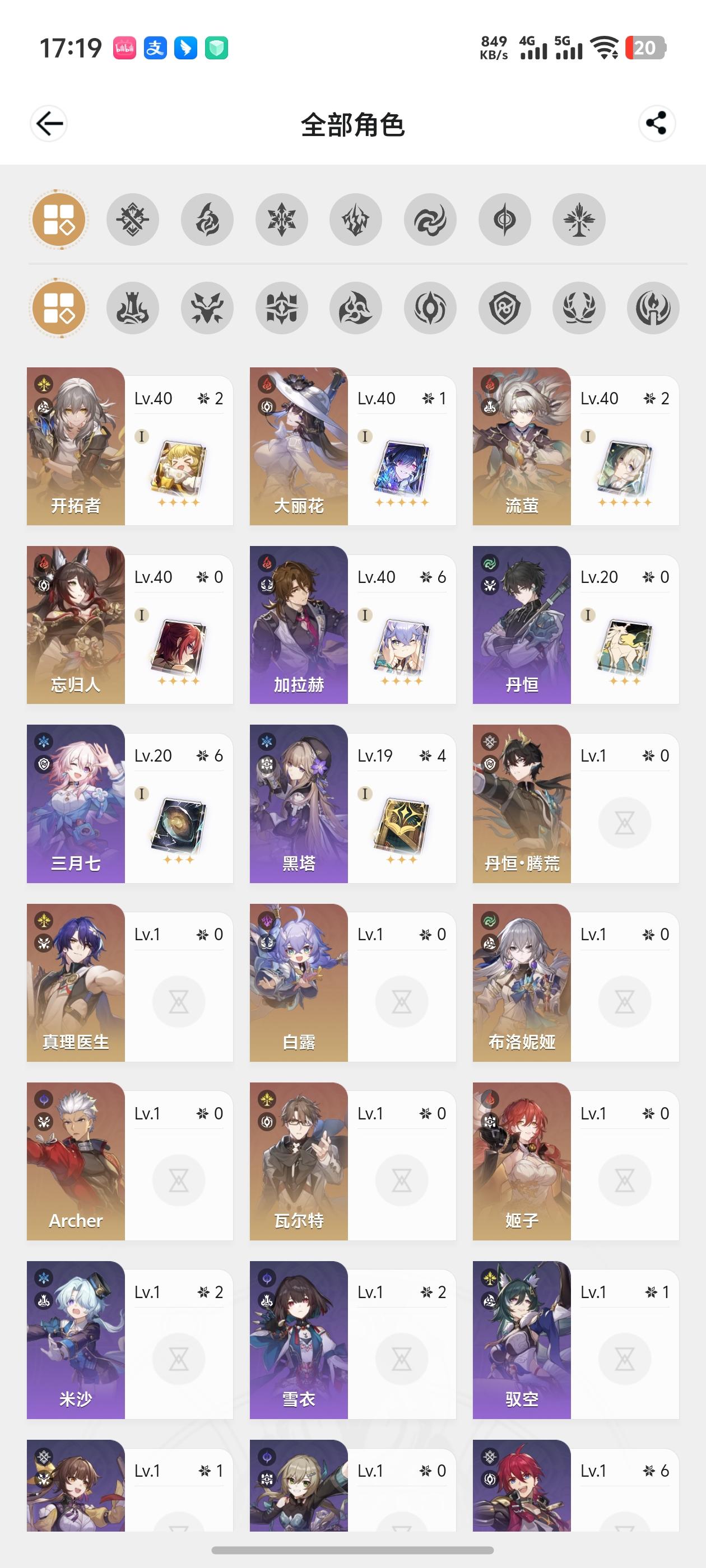 帖主这个号是玩的第二个号,有一个开服号,但是后面找不着了,后面又换了个号玩刚开始玩崩铁是很开心的,当时刚开服玩卡芙卡,我觉得好惊艳呀设计也都很好看,唉,可惜现在打不动啊。你铁现在的环境也是一直有人喷的,坚持好久了,一直想着不玩吧,总是有一些回忆的,现在就是每周上线,清清周常,真的会有人每天上线做日常吗?新版本出的大丽花,我还没抽到,我这个还比较非,每次都吃大保底,唉,刷到很多,因为环境还有卖卡