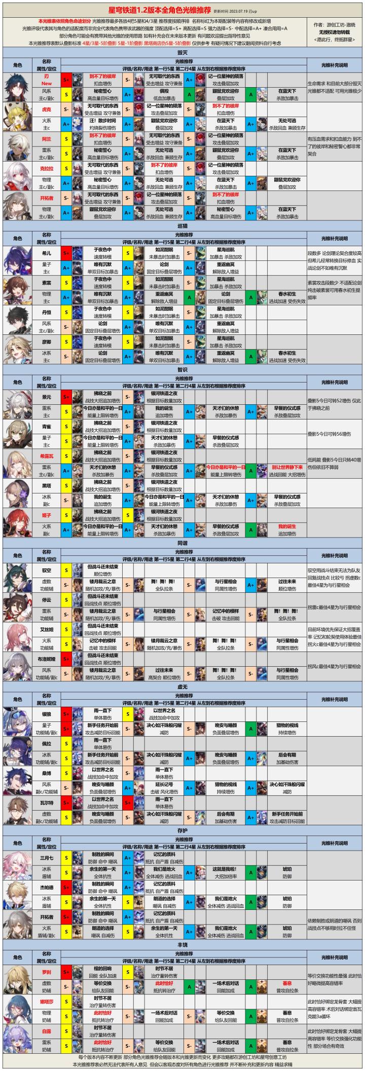 UID 100760002各位开拓者好,我是澈晓。今天为大家带来1.2版本全角色光锥遗器推荐!新版本实装了新角色「刃」和四套全新遗器,对目前全角色的配装思路产生了强大的冲击力,绝大部分角色的遗器方面推荐都有更新。爆肝制作,只为了让各位开拓者能尽快掌握新版本知识点,希望各位观众多多点赞支持! 先奉上以【命途】和【属性】分别归类的两版全角色光锥遗器一图流,量大管饱,欢迎品尝~在一图流后还