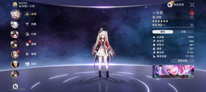 UID:104719728火花是火属性、欢愉命途角色,堪称欢愉体系里的笑点核心输出。她依靠战技开启直播对战状态,随机获取打赏礼物,借此快速积攒大量笑点与战技点。每一点笑点都能大幅提升欢愉队伍【好活当赏】的伤害与增益层数,同时为后续爆发快速铺垫。她超高的笑点产出,配合爻光的「阿哈时刻」,共同组成一套成熟的欢愉输出循环;自身产点效率极高,输出端还能实现战技点“越用越多”的正向收益。随着后续欢愉系队友