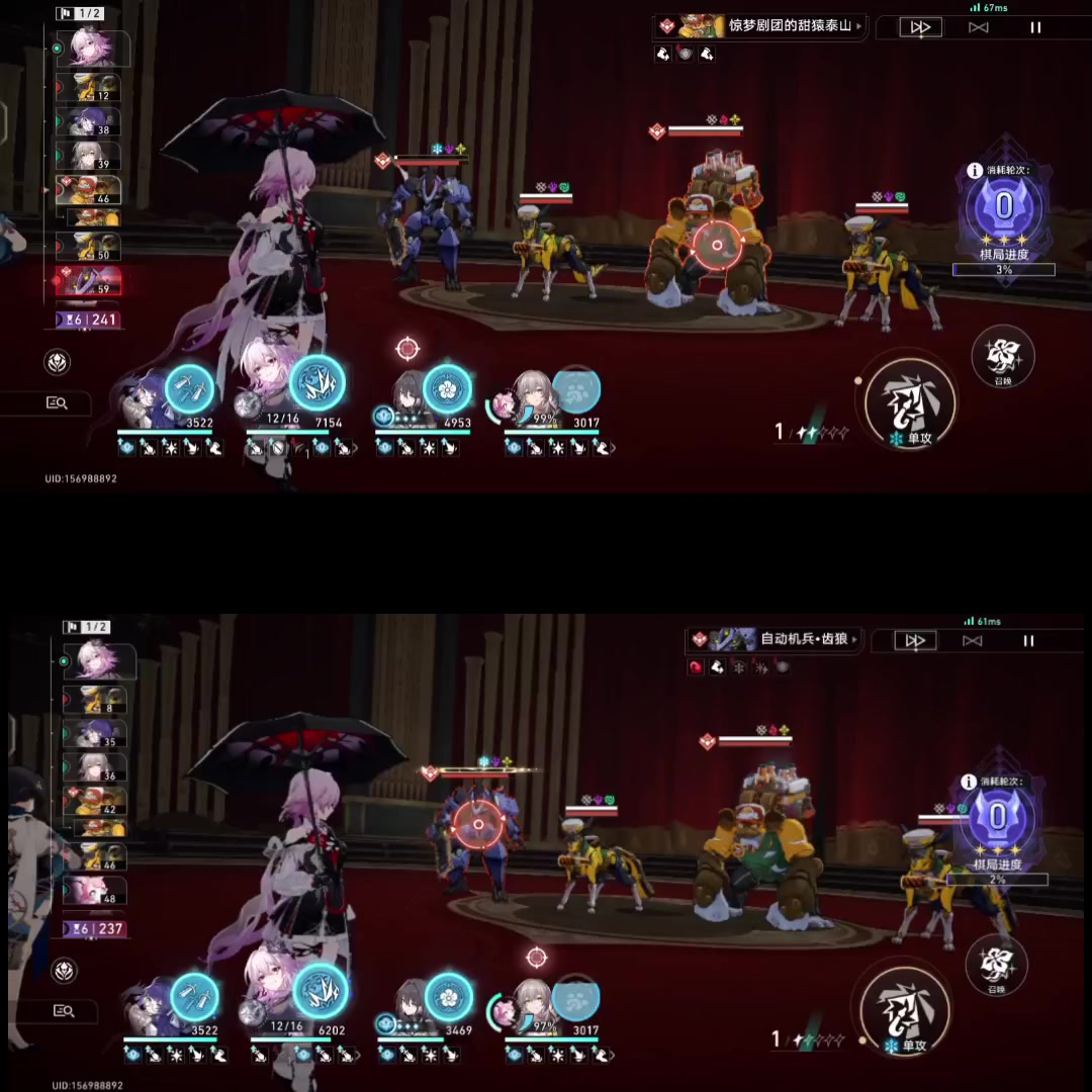 什么?你说你用全免费的队友,也能在骑士打出800万核爆!回归正题,我讲的是蝶专跟风专的伤害对比。很早以前有人问我,长夜月主C用什么光锥最好?队友怎么加金最划算?我的回答是20长夜月加00风堇,有条件再抽两个风专。当时我就想发这个攻略了,我怕有人绷不住,还怕有人拿风专易伤效果不叠加来喷我。现在无人在意了吧,所以我还是想发出来。伤害对比的视频我测了很多遍了,结果都是这样,结尾有省流结论。 单看数值: 蝶