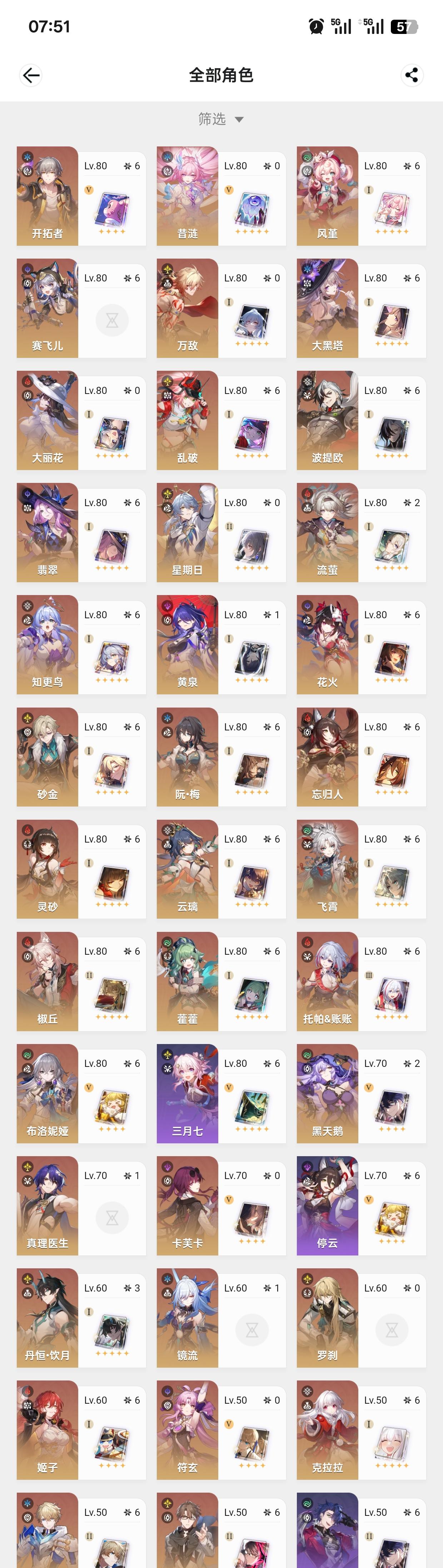 八重樱、白厄、刃、花火、银狼、遐蝶、波提欧