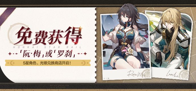免费获得「阮•梅」或「罗刹」!5星角色、光锥兑换商店开启!