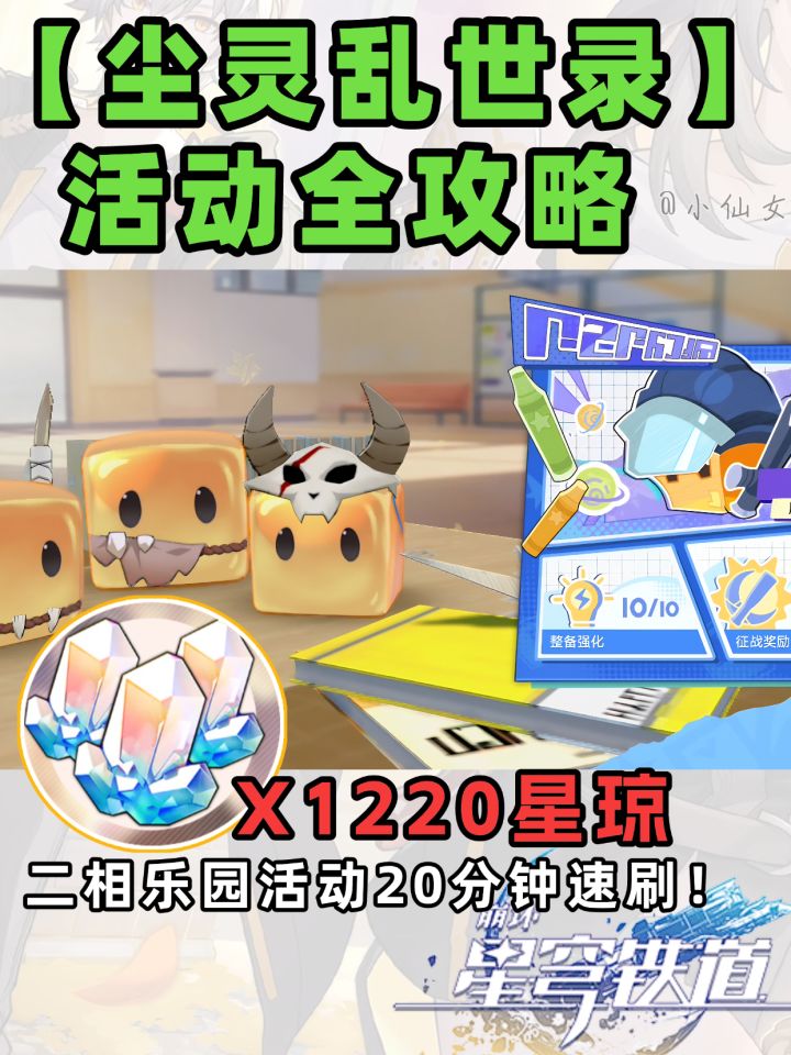 UID:104719728【星穹铁道】版本活动攻略&「尘灵乱世录」速刷1220星琼大家好呀,本期给大家带来崩坏星穹铁道4.1版本二相乐园攻略活动「尘灵乱世录」,共计1220星琼,20分钟跟攻略快速拿满,抄作业那奖励,简单易学,还没做活动的小伙伴们赶紧点赞收藏,拿奖励吧!#崩坏星穹铁道 #游戏安利 #崩坏星穹铁道创作者激励计划 #崩坏星穹铁道攻略 #游戏推荐 #献给破晓的失控 #献给破晓的失控