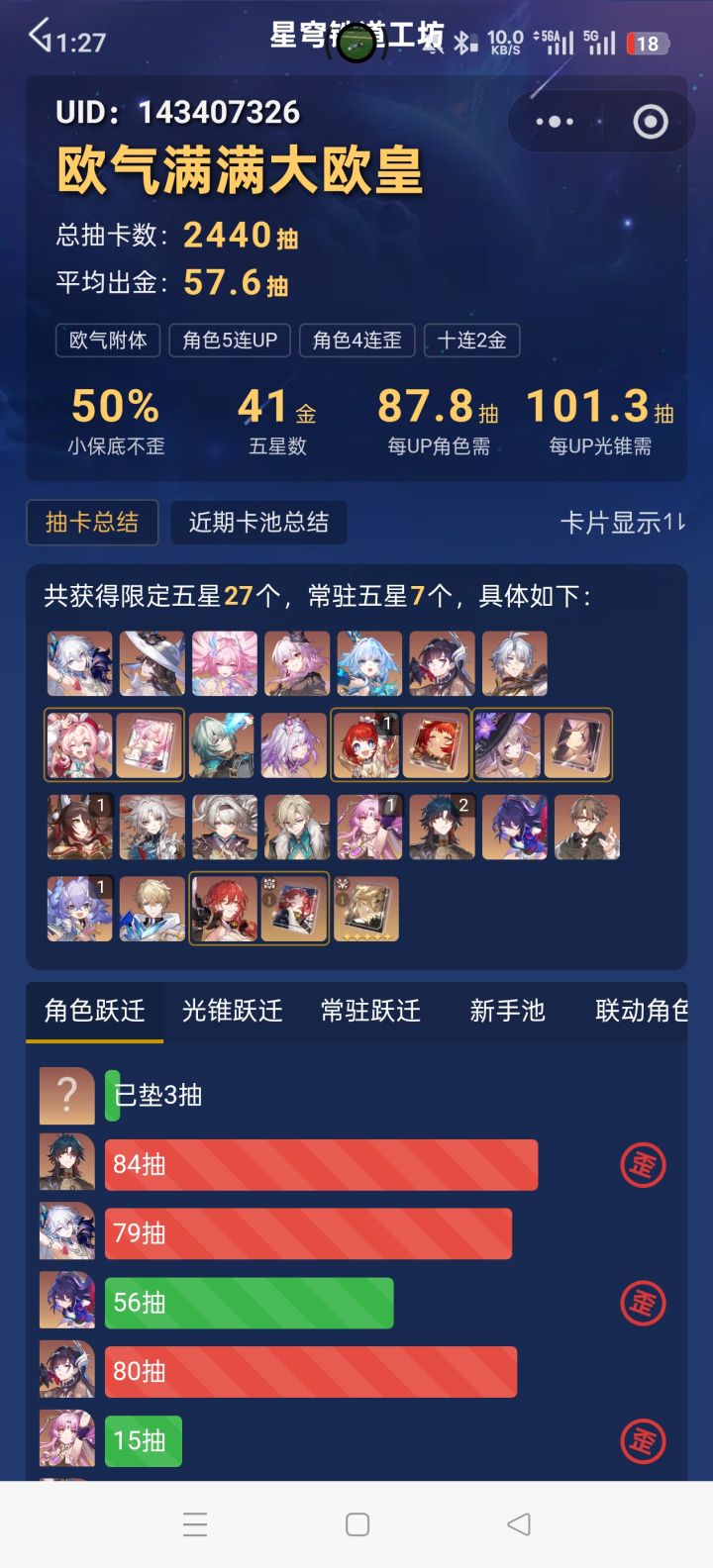 每次都是七十多抽出当期up池角色,但是不会歪,是欧还是非#崩坏星穹铁道