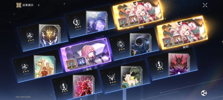 原来是11风堇,结果来了个双金,上头了补到了6命,花了200+抽。玩米游第一次十连双金,第一个六命。原来最爱我的是风堇