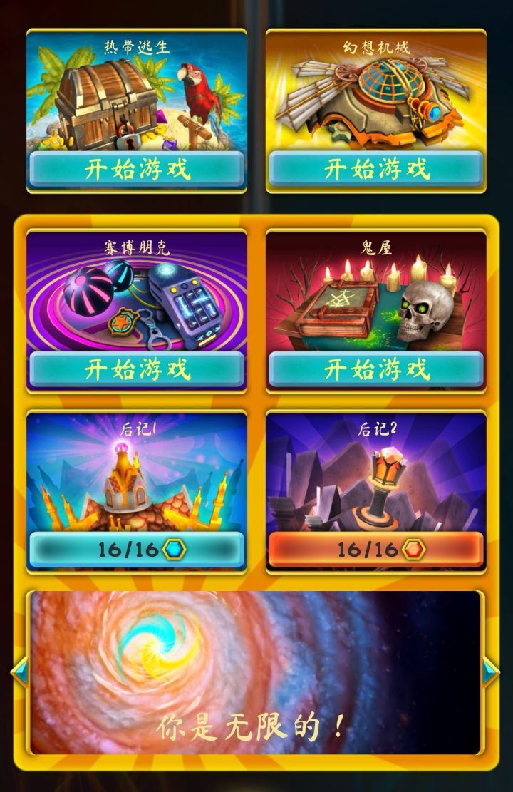 门系列游戏三部曲最后一部也通关了!这一部同第二部架构一样,共四章16关,外加2个后记。第一章是热带逃生:灯塔、乌龟岛、钓鱼小屋、海盗湾;第二章是幻想机械:快递邮件、风暴机器、天空堡垒、空中冲突;第三章是赛博朋克:霓虹赛车手、食物之争、大节拍、网络罪犯;第四章是鬼屋:吸血鬼日记、地狱烈火、疗养院、恐怖蜘蛛;后记是超越混乱、绝对秩序。这一部游戏相比之前的难度降低,但在背景、机关方面的设计别具匠心。扩