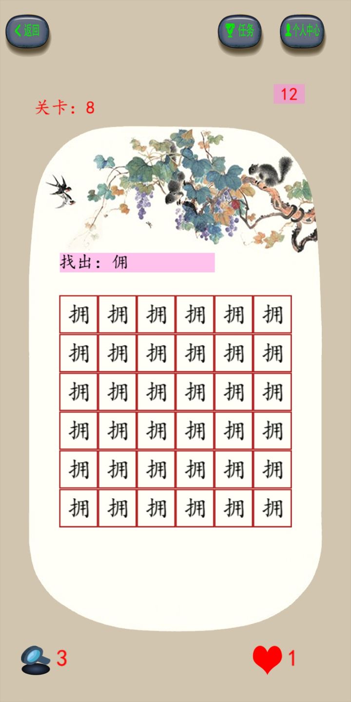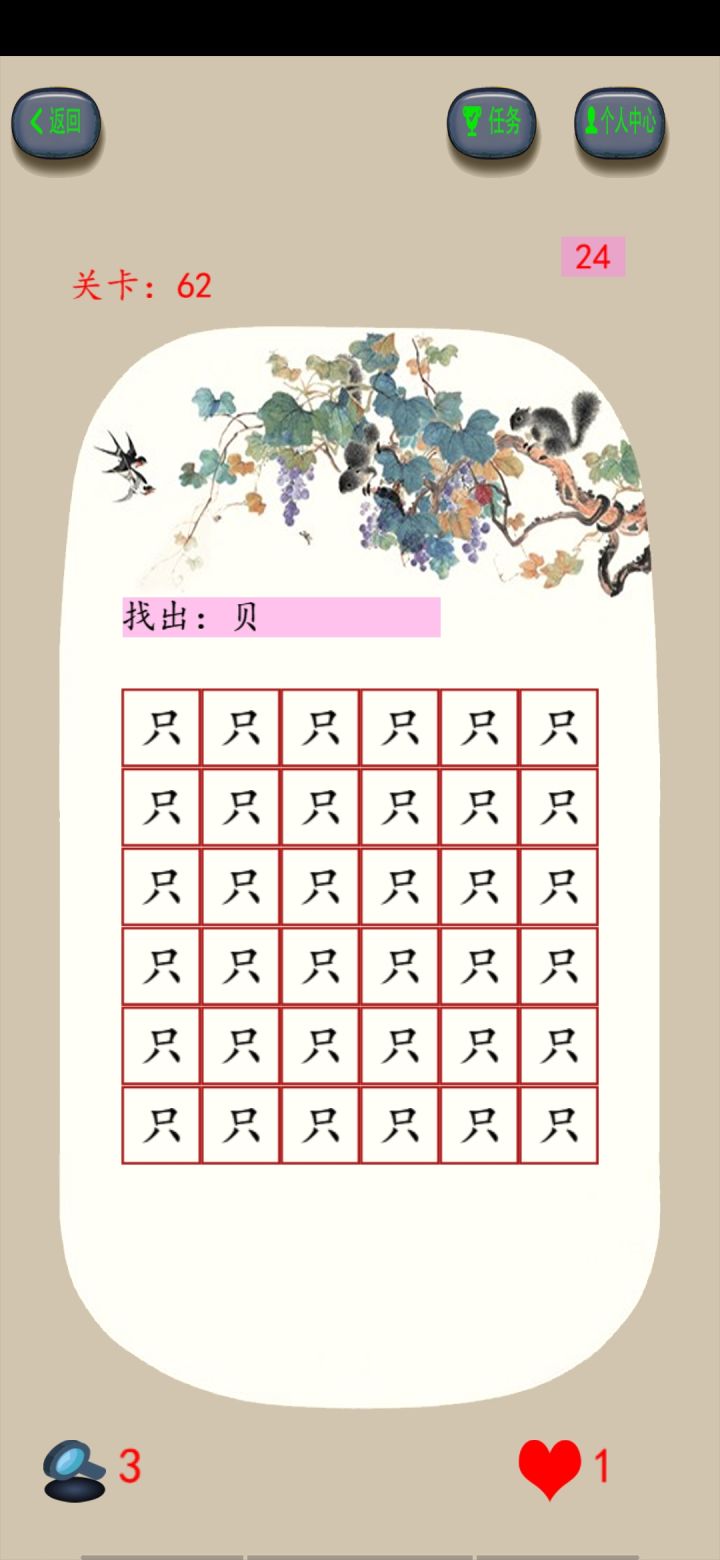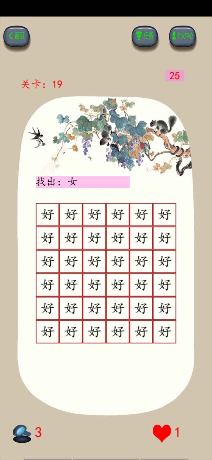 请问这个女字在哪里?一堆好字?我是不是还得拆开找呀?🤔🤔早不出来还强制看广告,我丢。