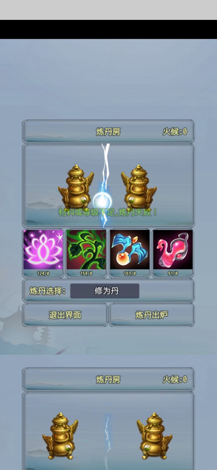 炼丹等级考试 1.贞观之治2.长征途中3.天梯23点奖励4.签到获取精力720灵石1005.万物复苏2%6.由气血控制7.肝神奖励1.2倍8.修为获取公式选(3到6的随机数)9.台儿庄10.爱新觉罗11.陶渊明12.法宝最高12级13.皮肤最高10级14.1937年