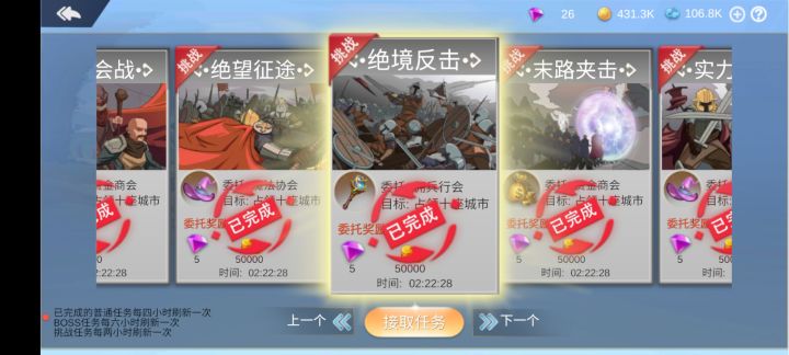 开局进去游戏选择三英雄一中之后度过新手引导之后会送4星紫色道格拉斯 可任意选择过渡英雄 英雄招募界面勇者招募为2小时刷新最高三星英雄 传说招募为4小时刷新最高可刷新4星英雄 神话招募不刷新需钻石手动刷新 最高可招募5星英雄 (保底30) 签约界面:每次英雄招募可招募三次(用于调整一次性招募金及工资 工资需每月支付 钻石增加成功几率)三次之后英雄逃跑 矿场界面:矿场为每2分钟计算1次 1次/一