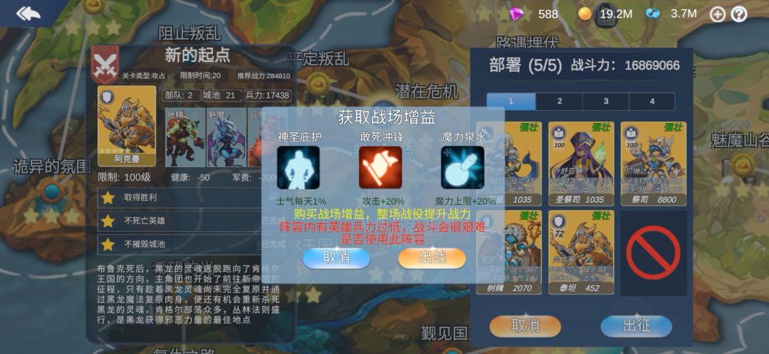 新版终于上线了。很多朋友感觉教程麻烦,直接跳过了,然后感觉不知道该怎么玩了。 我就拿一个酒馆普通四星英雄(带削弱技能,非直接攻击型英雄),带初始选择的精灵妹子(补血牧师型)和一个可以在酒馆比较容易刷出的三星南瓜头(法术型)的433组合,从第一关开始推图,做几个新的过关小视频。 具体操作按照新人方式来(打完仗再训练,训练主要选英雄自己擅长的方向,就是底下金色的属性),没有带任何勋章和装备。 每次开新图大家应该先暂停看一下地图,设计进攻路线。为节约时间,我就不暂停了,先发第一关。