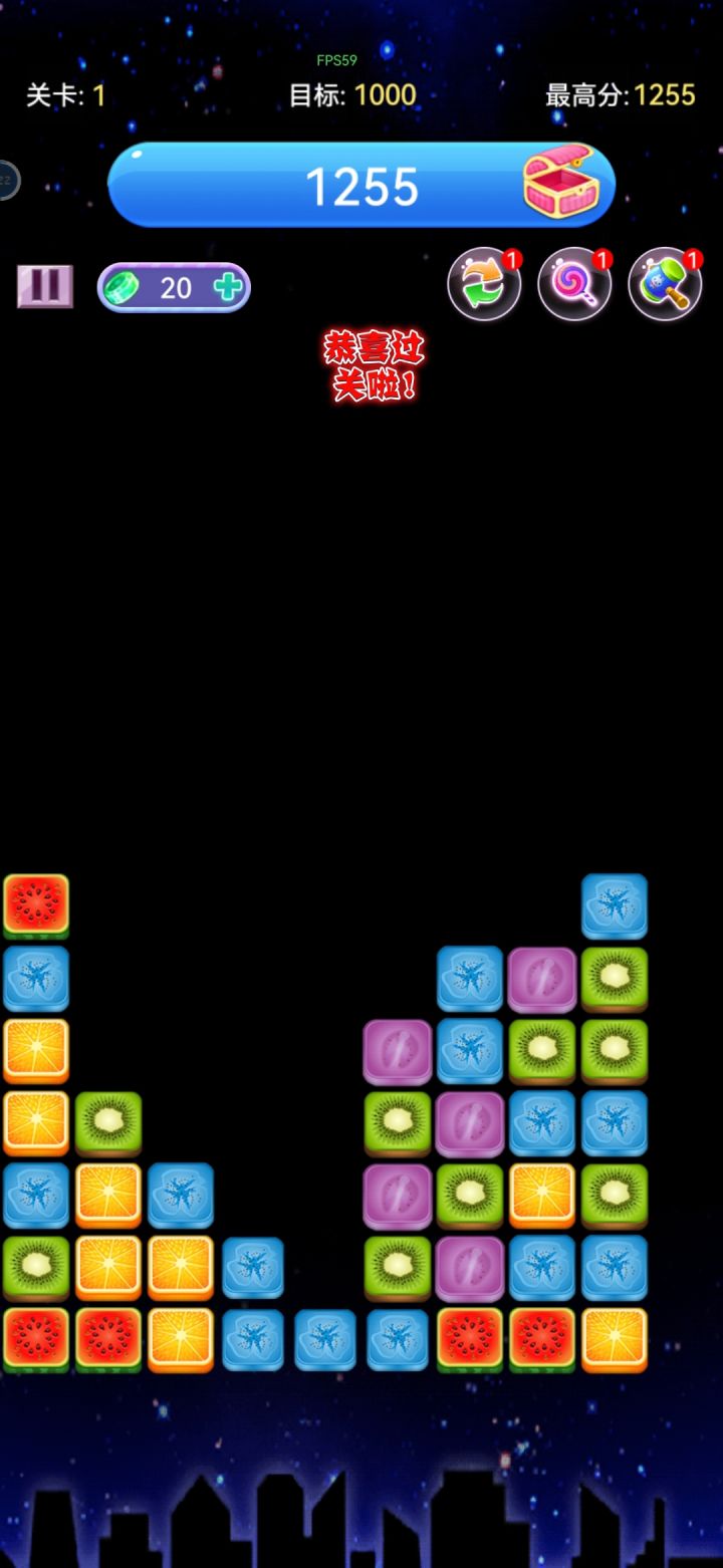 游戏很简单,点击两个及以上相邻的相同水果即可消除,没时间限制,只要达到目标分数即可通过~注意退出游戏时有广告弹窗,其他没啥好说的,休闲小游戏打发时间还是可以的。
