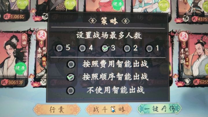 战场人数最多3人按顺序智能出战