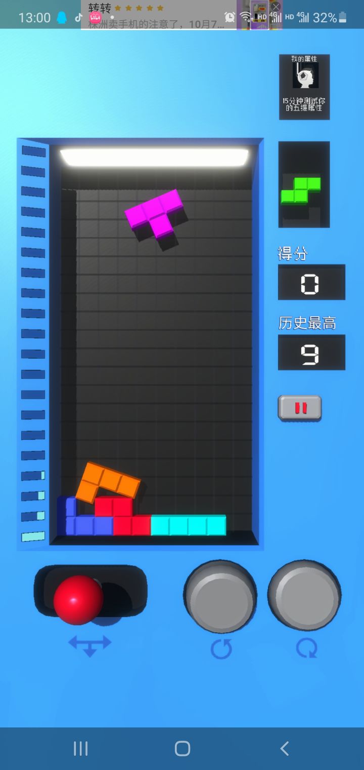 当第一个红色方块卡空我就感到了一丝丝不秒,当时老墨以为自己能苟住。 但是数个回合后…这是什么鬼啊!!哪个一行又是怎么消掉的啊?完全搞不明白! 但还挺好玩的⬇️⬇️⬇️大家都打了多少分!有没有上分秘诀!教教我教教我#我的游戏日记Vol.1#离谱#俄罗斯方块#益智游戏#休闲游戏#迷惑行为大赏