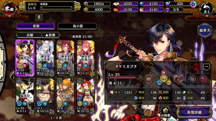 后期珠子会缺,然后前期建议囤一点。顺便50级之后升级会很慢。建议去八百屋买个战斗经验心得。然后记得刷本。还有日替挑战修炼场啥的。刷本看看可以拿到的道具,建议开宝箱掉落加成,战斗经验加成基本不用开。宝箱会掉落概率比较小的黑箱子,是武器制作方法(也就是你可以制作新的武器)(顺便我其实主要是来秀欧(不是)顺便丢个主力部队截图。现在这个阵容刷第二部第七章已经有点压力了没法一轮过(然后许愿桃太郎我想上限突破