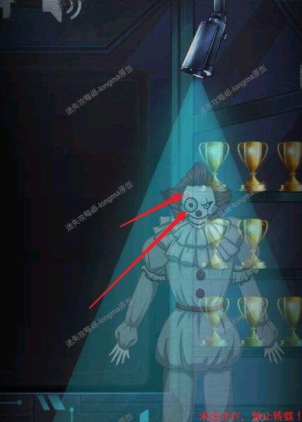✅第二章攻略34.点击奖杯柜子左边红色按钮,出现诡异的小丑全息影像,点击影像的左边大眼睛,得到【小丑的玻璃珠】。3435.来到右边有相片墙的房间,点击桌上的【奖杯】,然后回到第一个房间,将奖杯放入柜子。35 35.136.来到第二个房间,点击麦克风,播放音乐《送别》,点击“送”“别”两字,打开柜子得到一张【汪崇光的照片】。36 36.137.向右来到第三个房间,点上方的屏幕,放入【小丑的玻