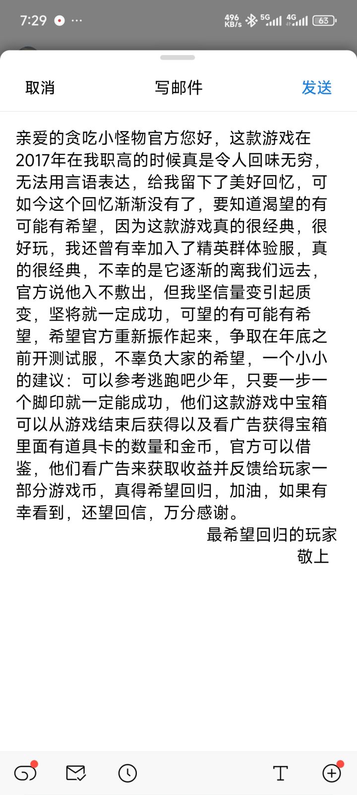求游戏回归给官方发邮件