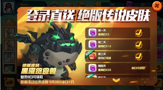 史上最强登录好礼来啦!想拥有红毛怪, 蓝毛酋长,红毛熊这三兄弟?以及绝版传说皮肤黑耀贪食兽吗?在《贪吃小怪物》里只要一个”登录”活动”,即可免费集齐啦!!!活动时间:开服前12天活动详情:1. 在活动时间内,达到相应的登录要求,可获得相应的活动奖励2. 直接在游戏内相应面板参与活动,奖励通过活动面板直接领取3. 活动期间内,一个ID账号只能参加一次活动活动奖励: