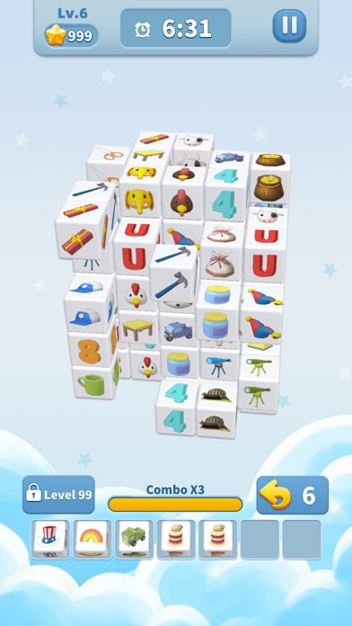 Cube Master 3D is a stylish match 3D game. You can swipe to rotate the cube match identical tiles to clear levels and use power props to help you clear all tiles even more quickly, MEGA victory!
