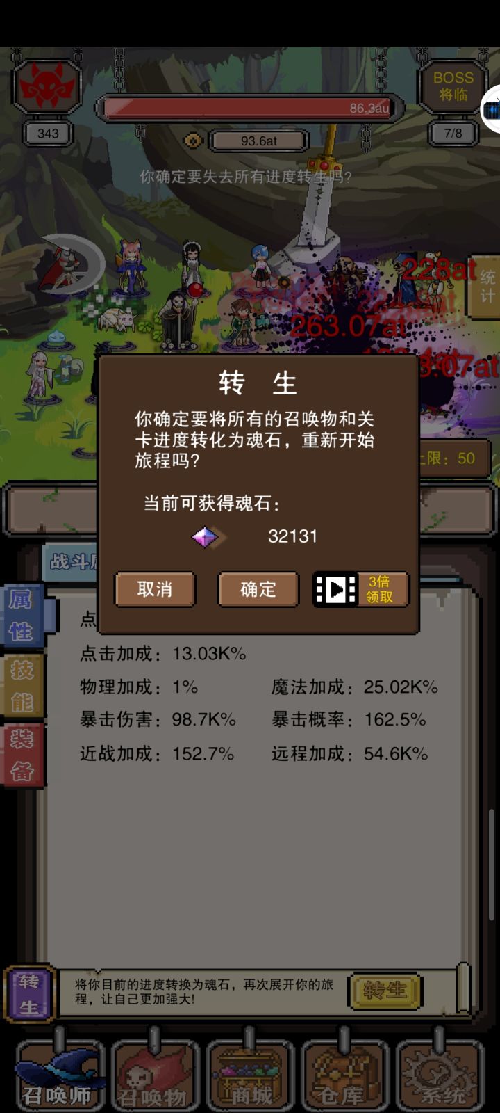看了一部分评论,我也不敢转生了,不转生打通关我估计也是可以的,现在是9刺客,暴击加成满,可以一直推