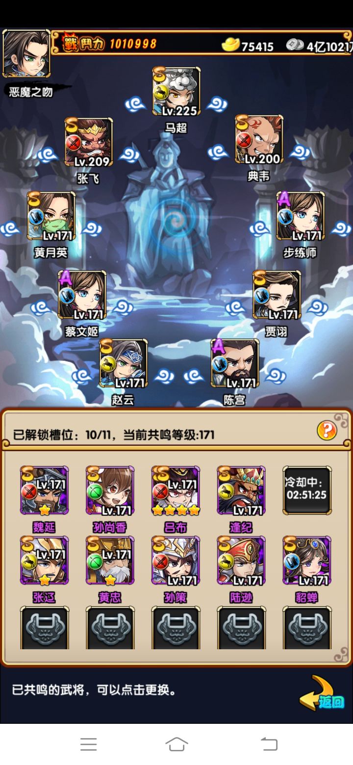 武将1.冲锋流典韦张飞版本真神,现在黄忠,孙尚香配马秒人很快,不过后续马会削弱,就算是削弱了也可以重点练2.前期个人感觉没有马能立即触发必杀技的后排比较好用(黄月英,甄姬,貂蝉)中期再上孙尚香,黄忠3.武将有张飞典韦推图很快,没有也就是推图慢一些,影响不大,可以换号重抽,有什么用什么,还原丹重置返还所有材料无亏损,只要快速凑齐缘分效果就好4.抽卡每天魏蜀吴群轮换,除了群都可以抽,群雄目前不