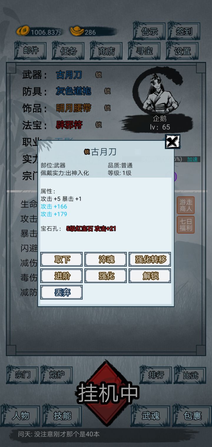 运气爆棚,60副本刷到的古月刀,攻击加了350,应该是接近天花板了吧😎(氪佬勿喷哈)