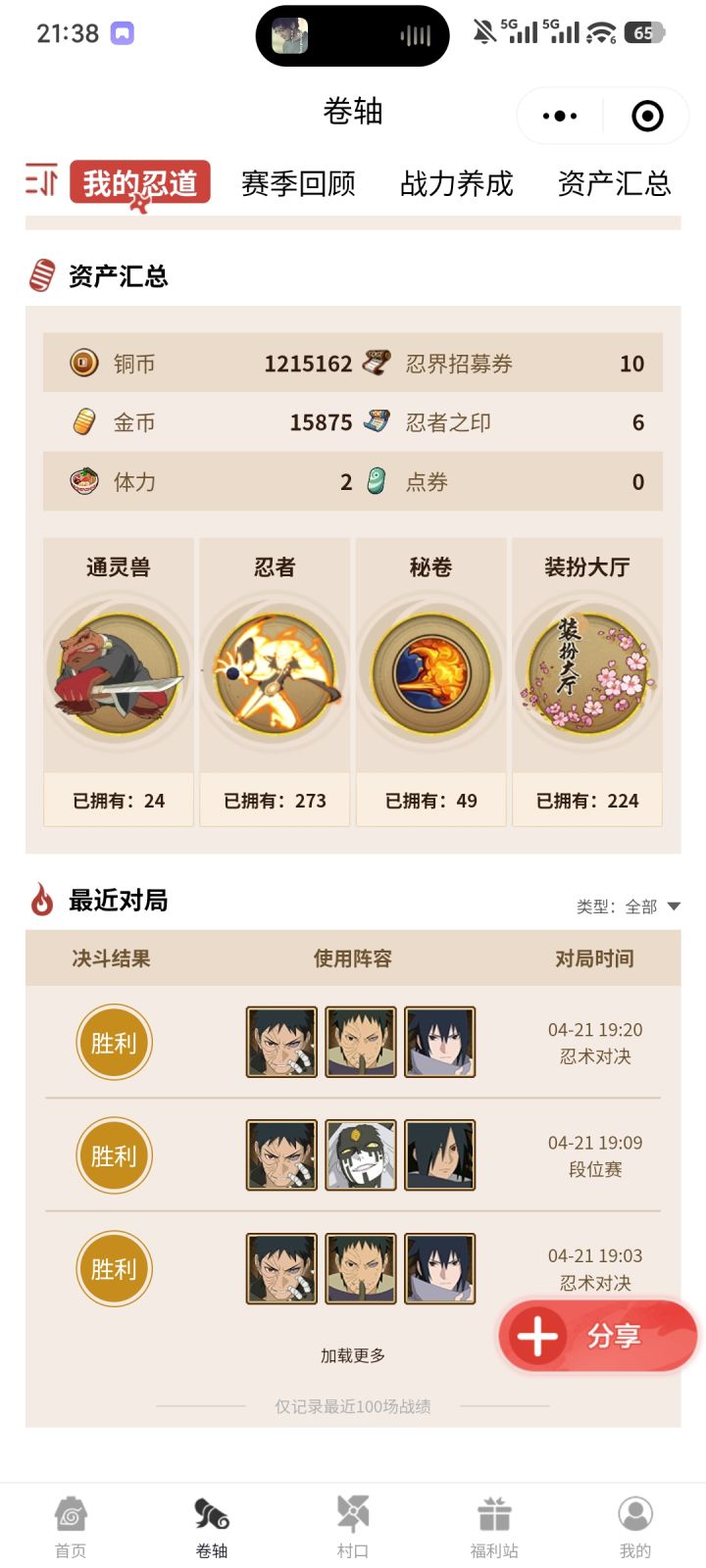 但对于现在快节奏时代而言,大家可以入坑只攒金币出忍者,只玩决斗场就行,总的而言,大家结合自己的情况选出一个适合自己的玩法。