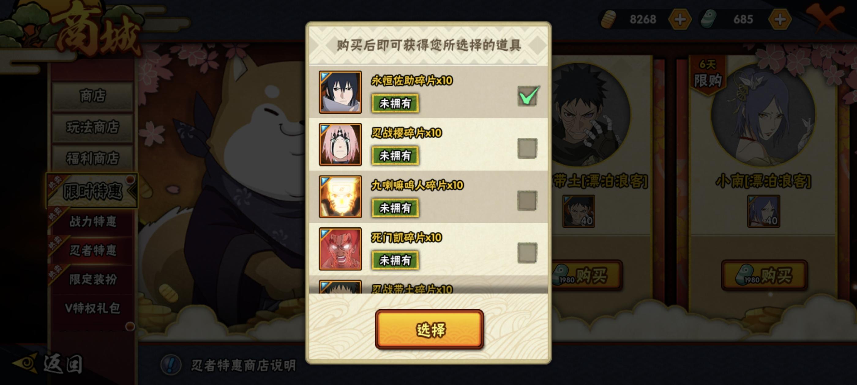 本帖纯手打,主要就是让新手少走点弯路,要是还有不懂,评论区可以提问看到就会回~近期有人在各大平台上面抄袭我的文章,我再声明一次这是我原创,全部手打,要是看到了请帮本猫举报一下。 要是有帮到新手们给本猫点个赞。 (游戏截图全部自己截号上截的) 一,关于商店忍者购买 1、忍者商店 忍者商店里的1980金币,1680金币忍者,本猫都不建议你们购买,因为在精英副本里面过了关,之后这些忍者基本都可以白嫖,