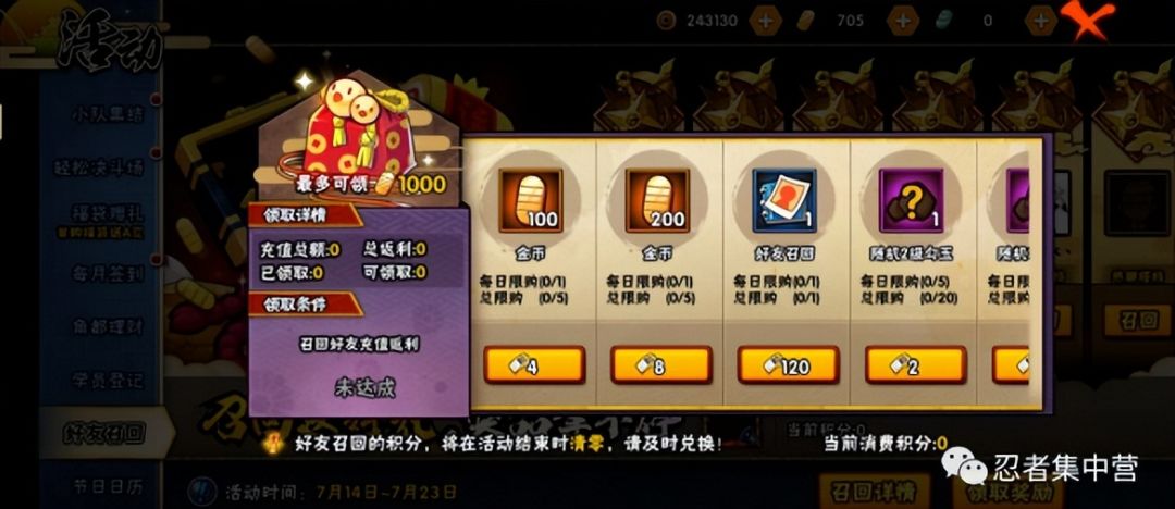 【火影忍者】秘密技巧!用最简单的方式 获得好友召回中的全部金币!