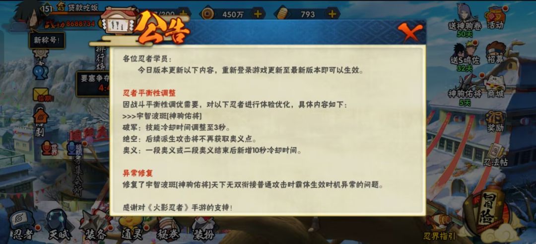 ①宇智波斑(活斑) 马上重做升级,但是目前来看给予的东西依旧太少,技能组诟病问题没能被解决,加个抓取组合技结果完全不解决怎么快速出抓取这个问题,还是和这个版本一样带散,没有哪怕任何改变。 当然你说真改了什么,其实也就是打打红✓比较舒服了,毕竟2技能现在带格挡,打红✓这种单段抓取难的忍者有一定康特性能在那,但我依然不建议你们招募,毕竟现在人手一个他弟弟,他弟弟是最不怕他格挡的忍者。 ②长门【秽土转生