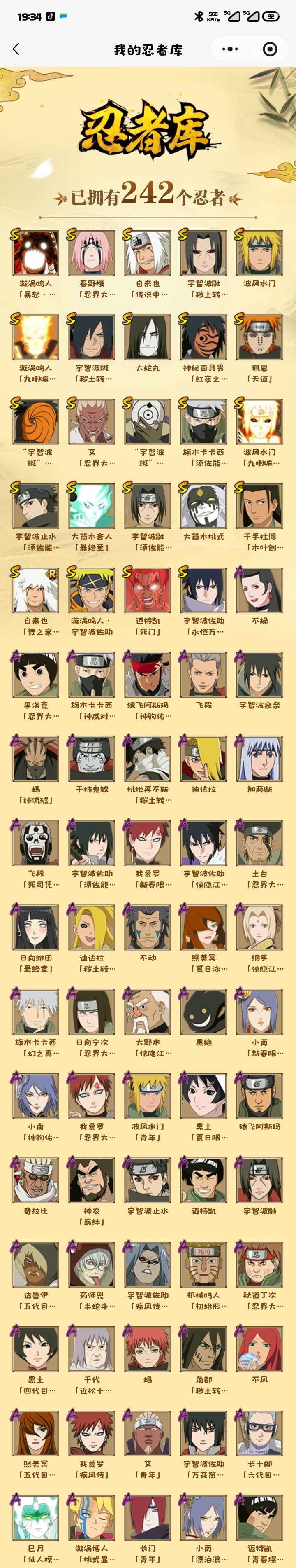 氪了三k多,有斑马,创立斑差十片,死柱间差十片,c忍差三个18的就全了#火影 #氪金