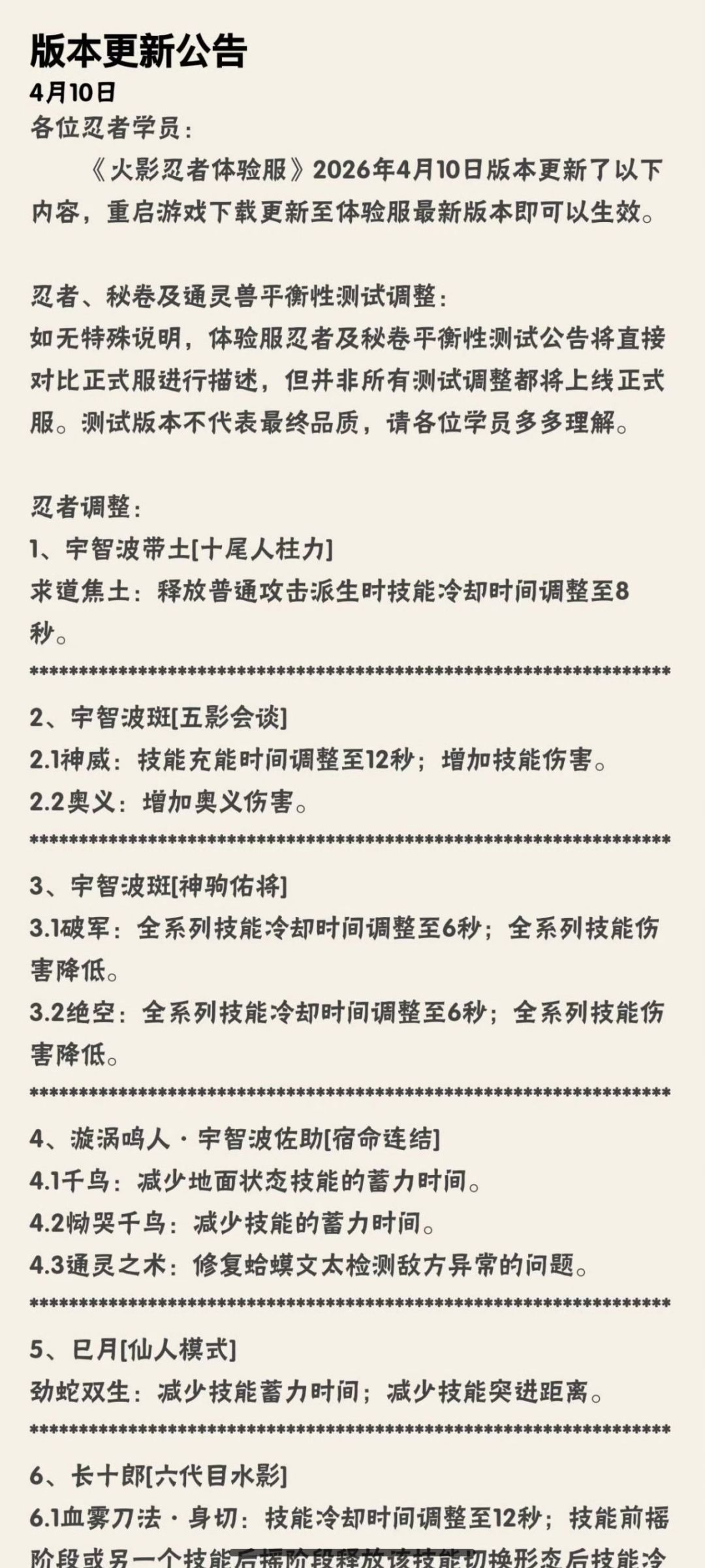 2026.4.10体验服忍者平衡性调整个人看法