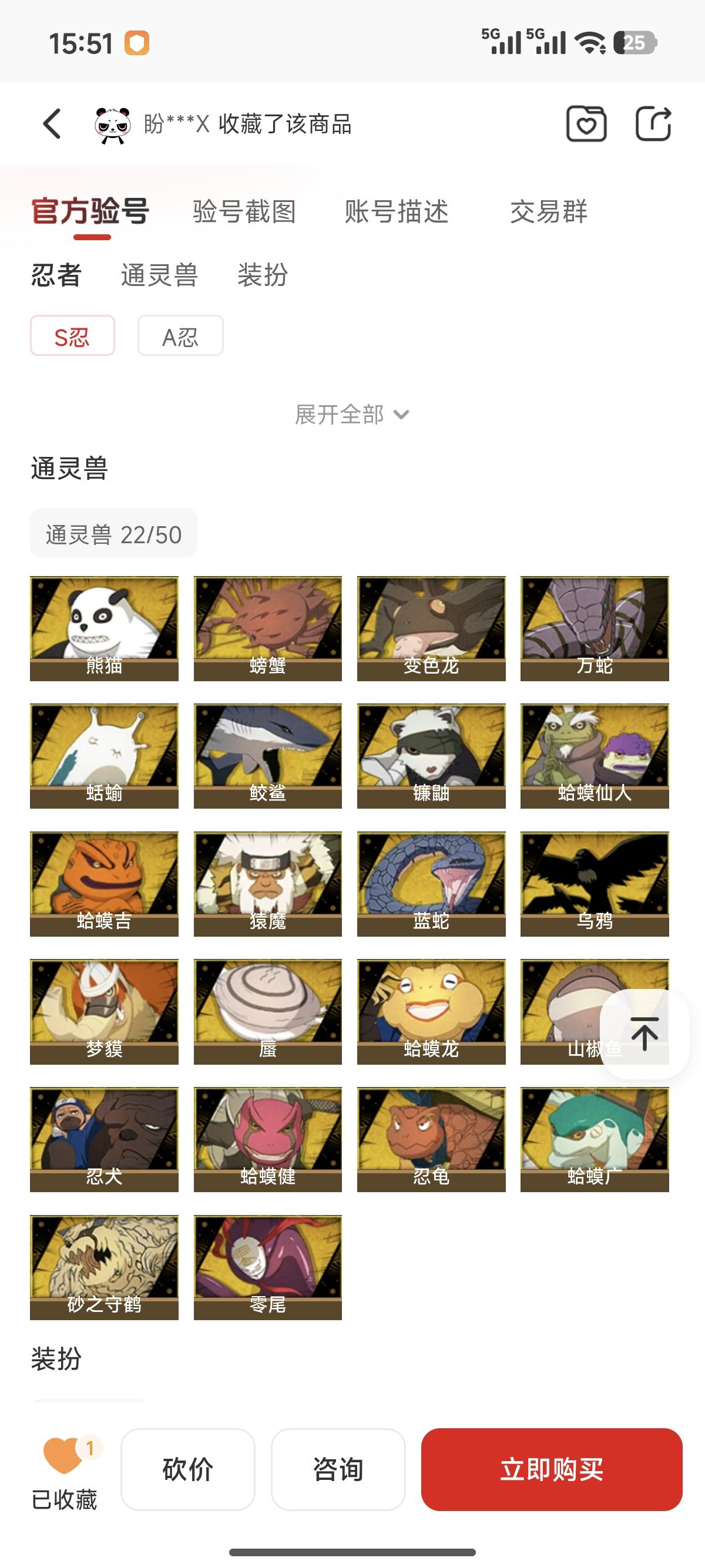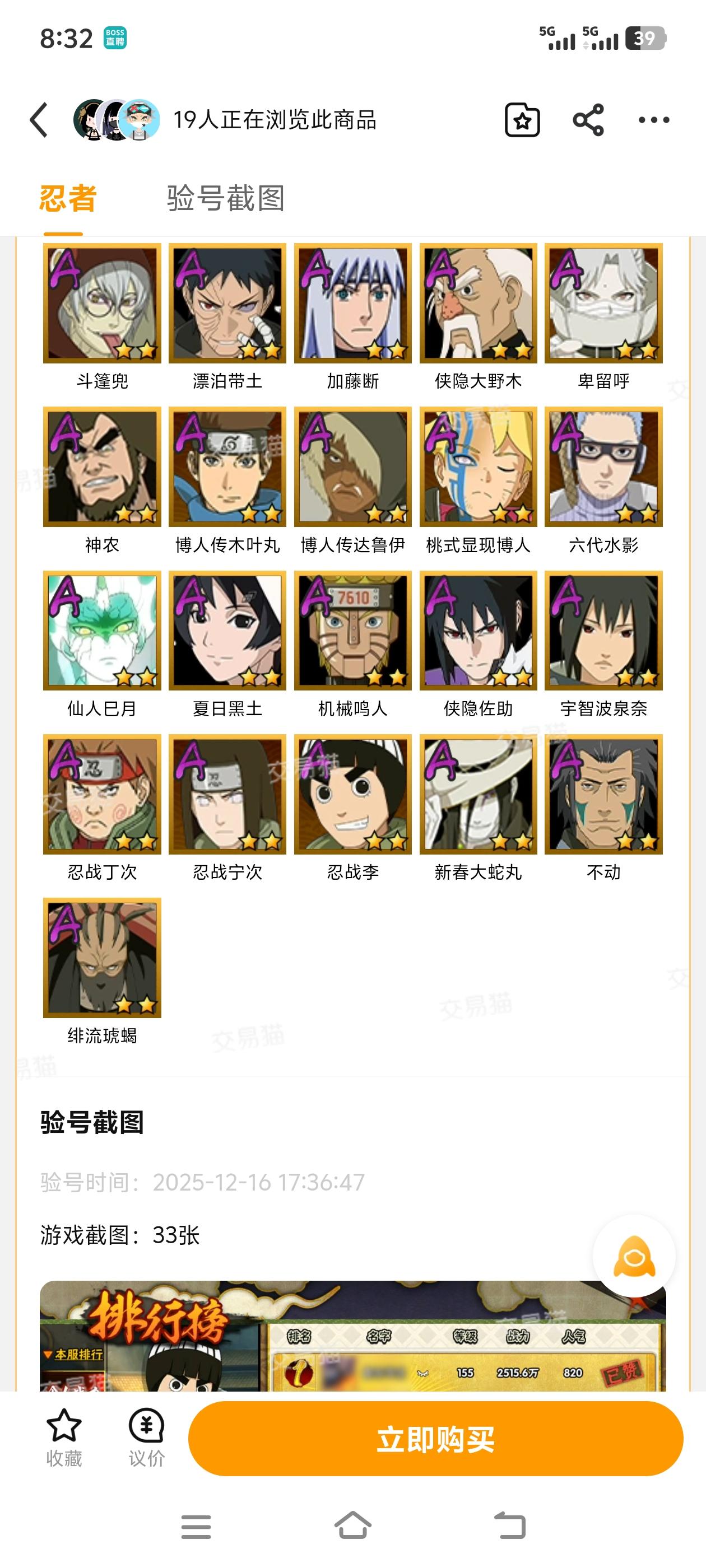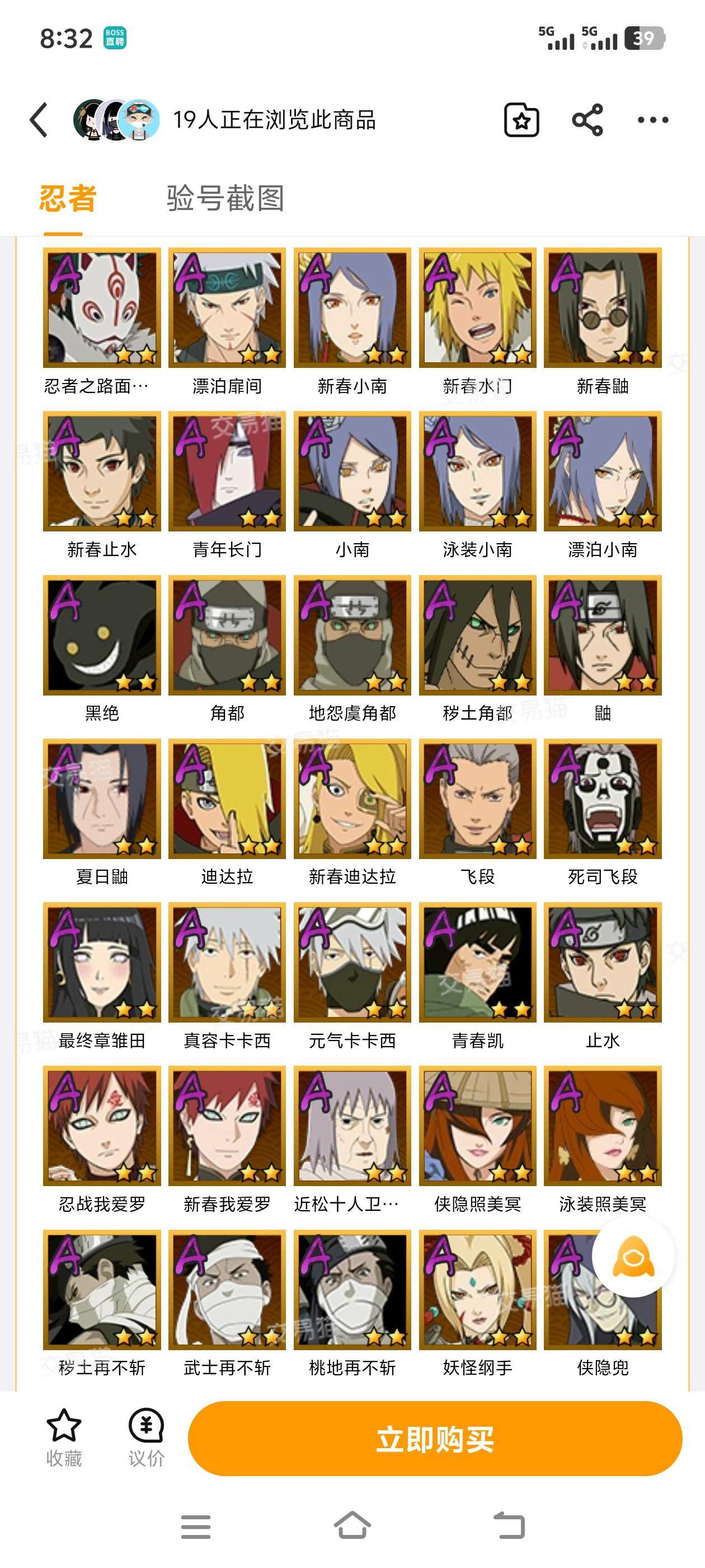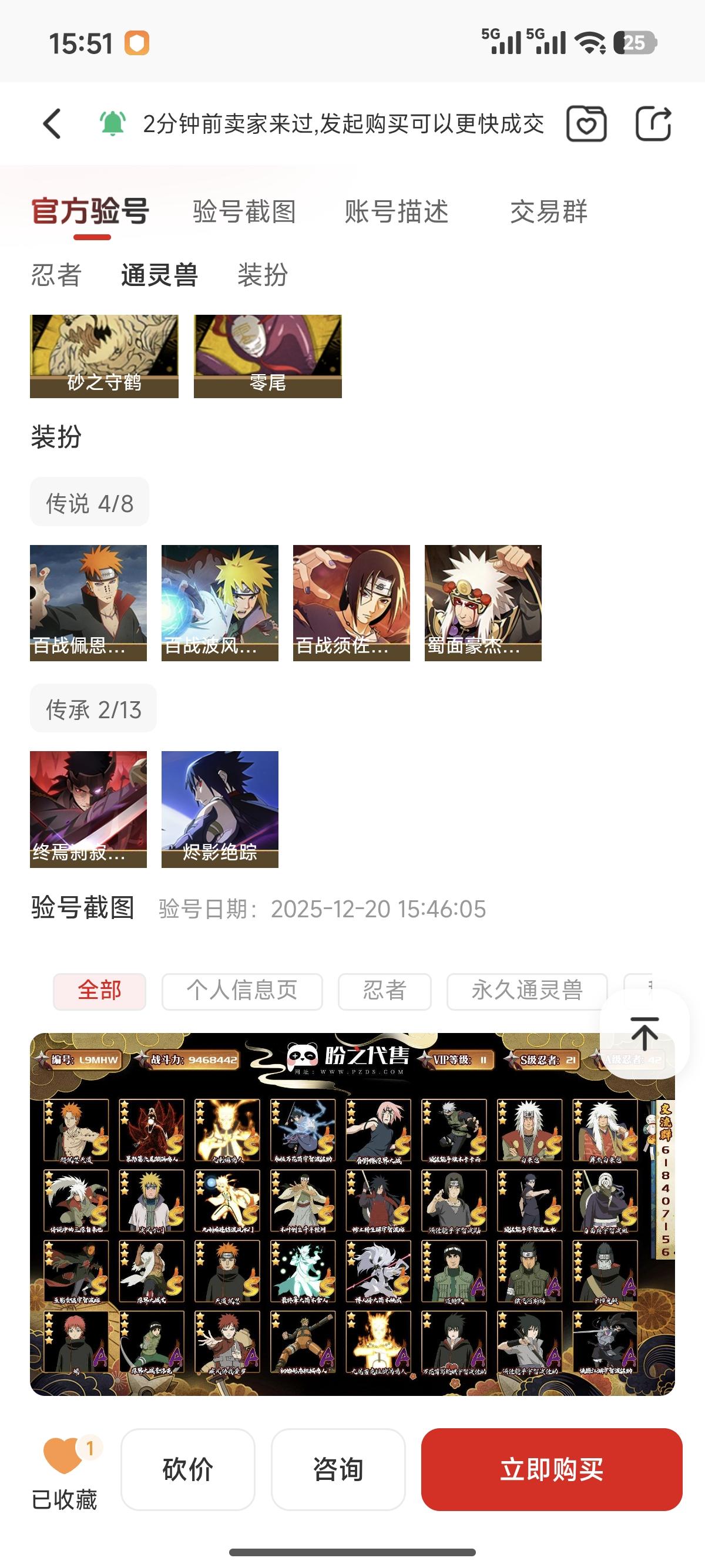 前四张是一个号,后四张是第二个号 第一个号v13,战力1237w 1020块 第二个号v14,战力1610w 1050块 第二个号创立柱间85片在下个忍法帖冲个月卡就能获得限时点券没动,号上有真点卷1496 第一个198有34个(小孩跟忍战凯当198)98通灵有7个,第二个算上下个忍法帖跟创立柱间28个就一个熊猫