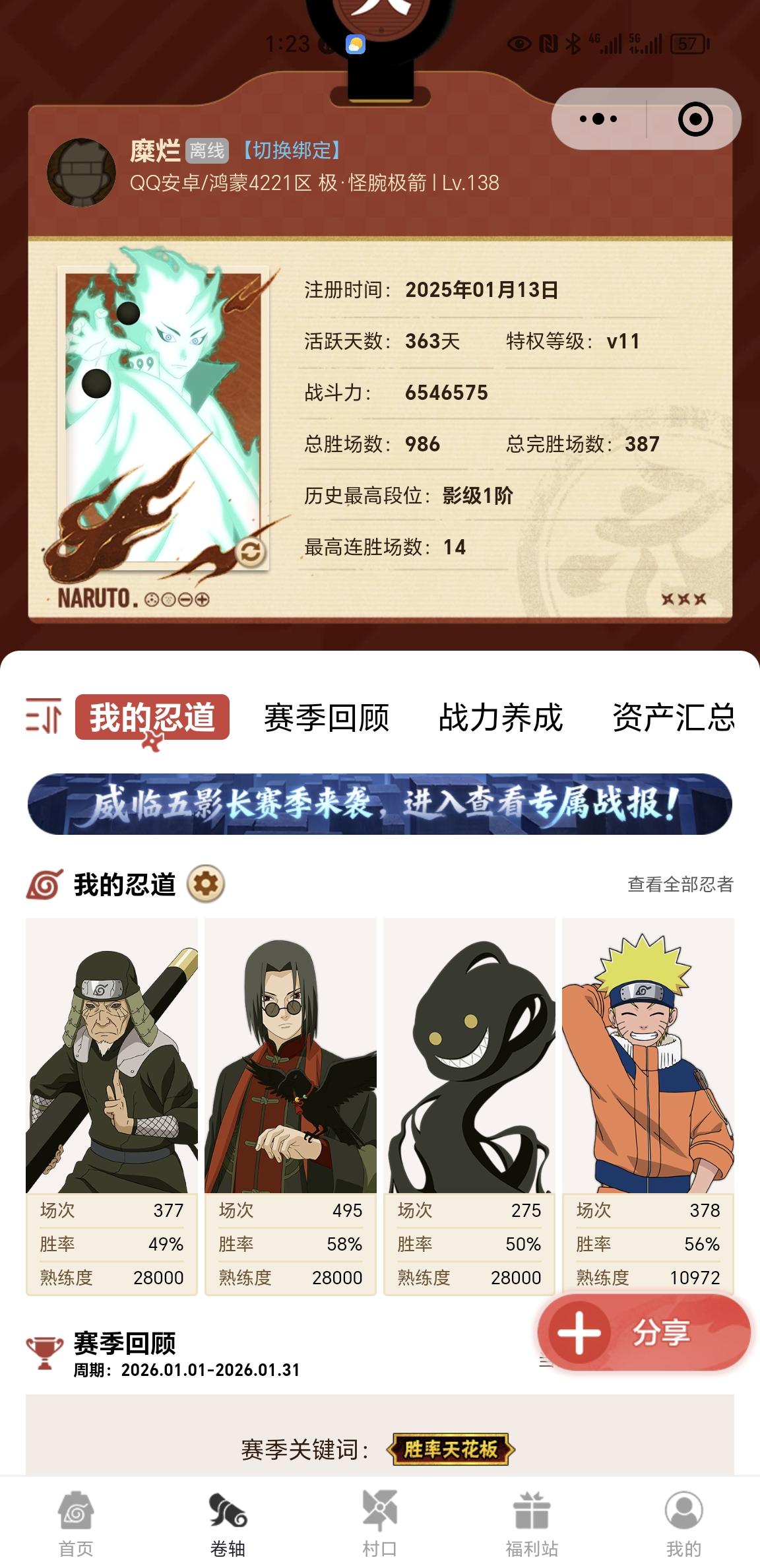玩了一年可以上个暗部,也有点忍者可以玩了