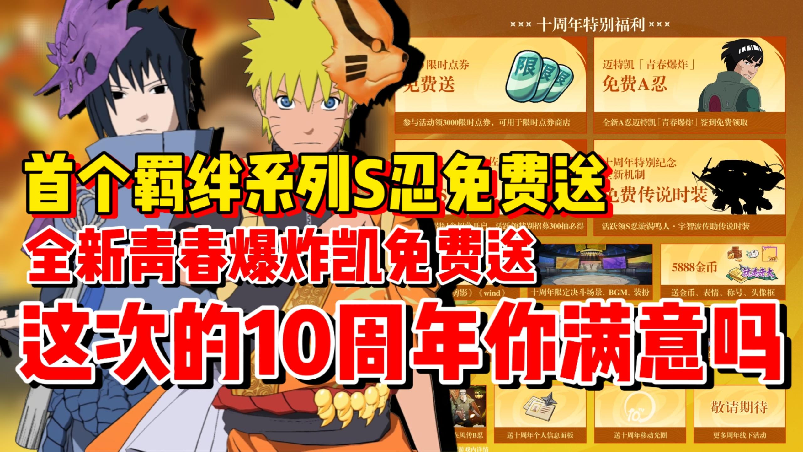 火影十周年马上就要到了,官方也在今天上午发布了周年庆的福利爆料,不仅有金币、装扮,通灵等,还送免费S忍、A忍以及传说时装各一个最重要的是竟然有3000限时点券!!!就是不知道限时点券商店会上架什么忍者呢