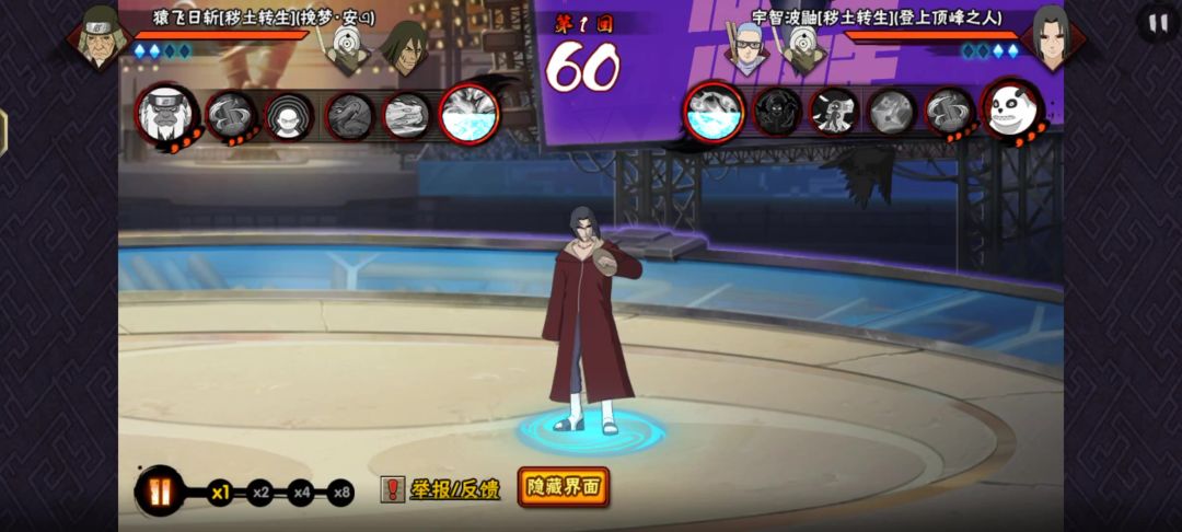 在屏幕下方有10颗写轮眼,场上的标记则代表漂泊团藏3秒前的位置,脚下的箭头会永远指向3秒前的位置。漂泊团藏拥有奥义点且写轮眼数量>3时,长按替身按钮可消耗3颗写轮眼发动伊邪那岐,将整个世界回溯至5秒前的状态,除了剩余的写轮眼数量。注意啦,若在每回合开始前5秒发动,则会重新开始本回合哦~若漂泊团藏受到攻击且写轮眼数量>3时,同样可长按替身消耗3颗写轮眼发动伊邪那岐,并回溯至5秒前的状态。当漂泊