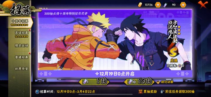《火影忍者》手游十周年福利持续进行中,十年相邀,羁绊共鸣,学员们可以在“送S鸣佐”活动中完成任务获取羁绊值,累计至指定数量可领取十周年特别纪念券,在十周年招募中进行抽奖,300抽必得十周年特别纪念忍者漩涡鸣人·宇智波佐助!还有漩涡鸣人·宇智波佐助传说时装“宿命连结”免费送!12月19日0点开启,学员每日登录签到领取对应奖励,签到14天即可获得该时装!漩涡鸣人和宇智波佐助拥有着深